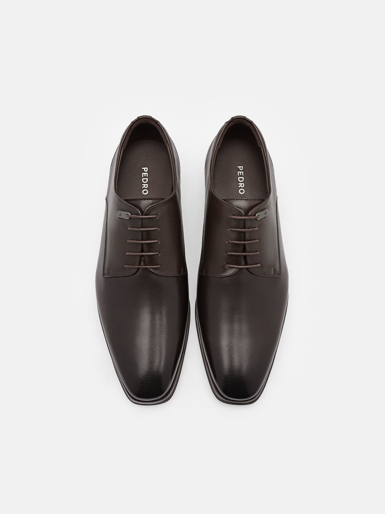 The Leather Derby Shoes keep it classic with a burnished calf leather upper that adds depth and shine. The design stays true to the classic derby silhouette with open lacing and clean, minimal lines, offering a timeless profile that works across tailored and off-duty looks.