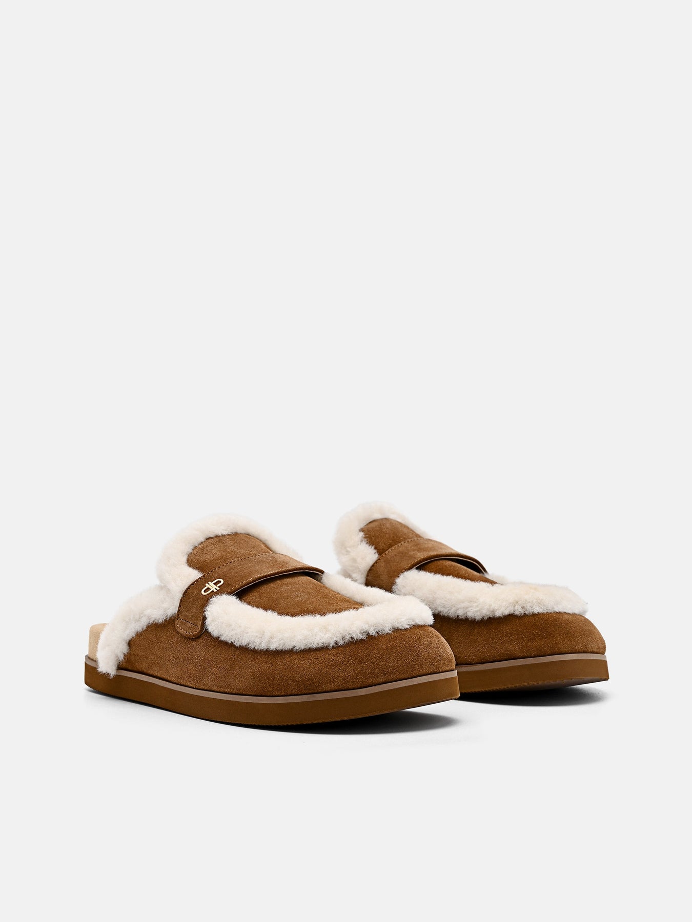 Regular price $79.90The Leather Mules tap into elevated comfort with a directional edge. Built on a chunky sole that adds weight and structure, the silhouette is wrapped in calf suede and lined with faux shearling, bringing together texture, tactility, and warmth. A subtle monogram hardware detail keeps the branding tonal and refined.