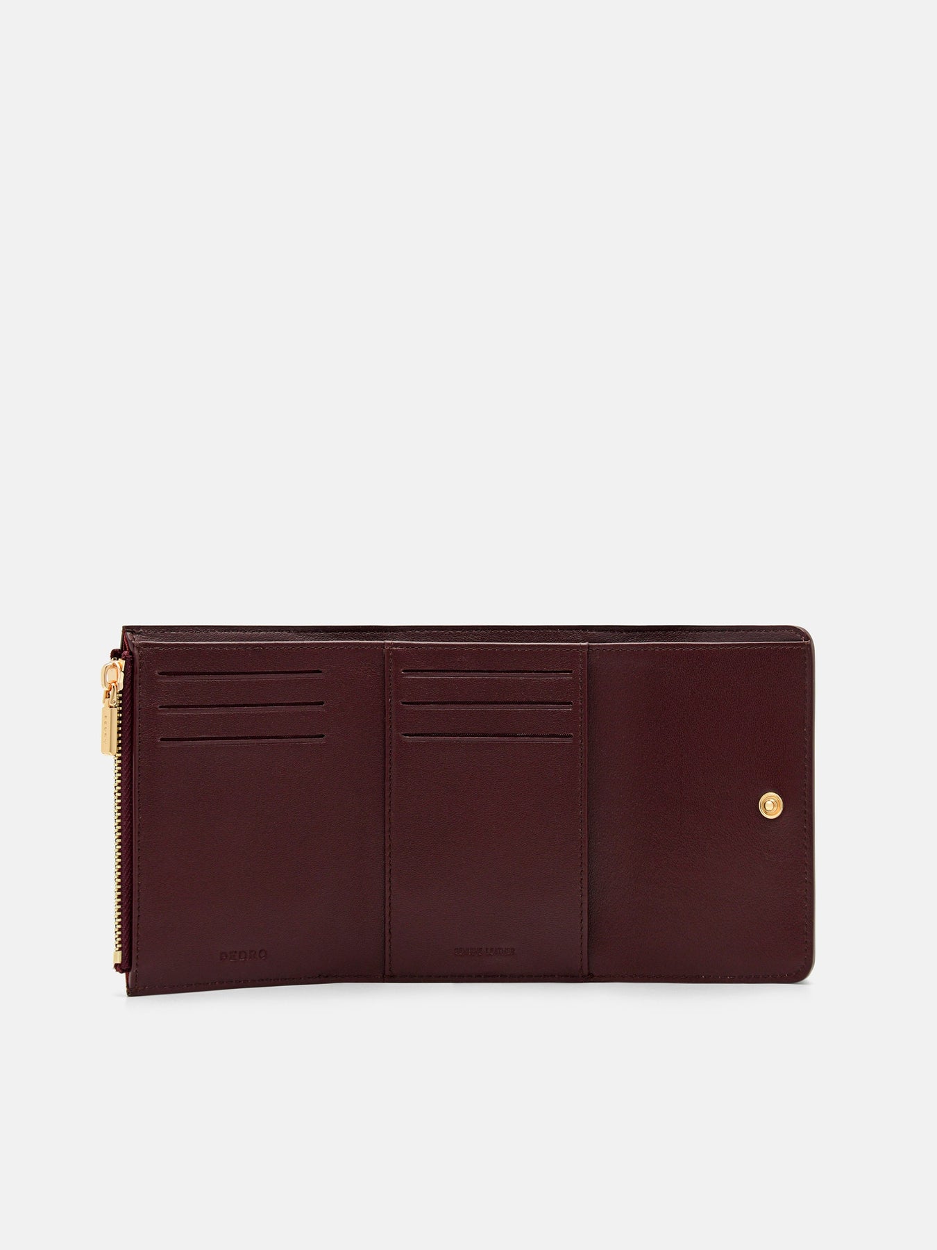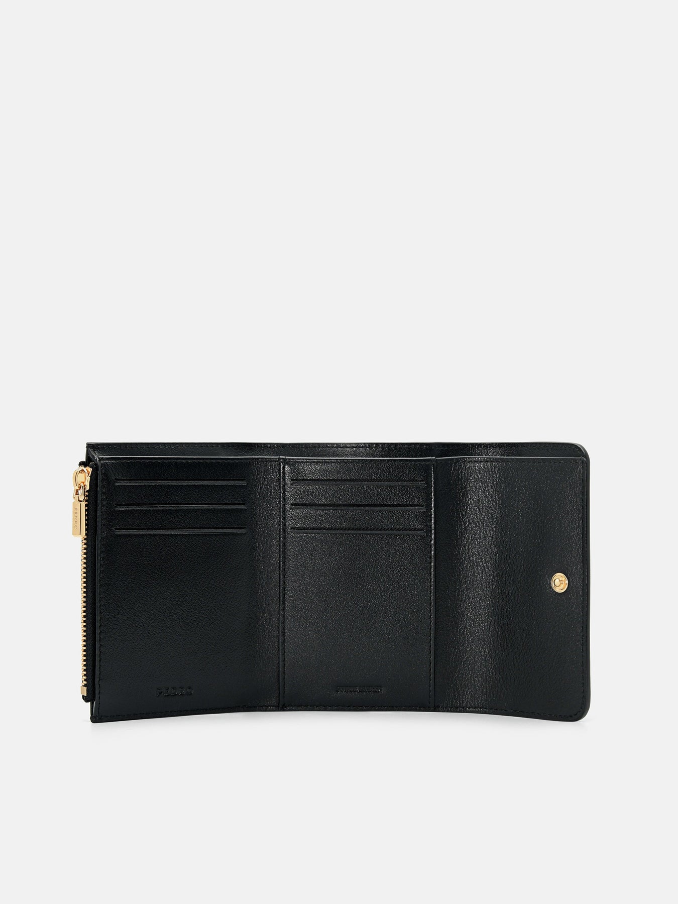 The Leather Tri-Fold Wallet reimagines classic functionality through a streamlined, design-led lens. With a crisp squared profile and smooth calf leather exterior, the silhouette feels precise and modern. Tonal hardware blends seamlessly into the construction, reinforcing the wallet’s minimal character.