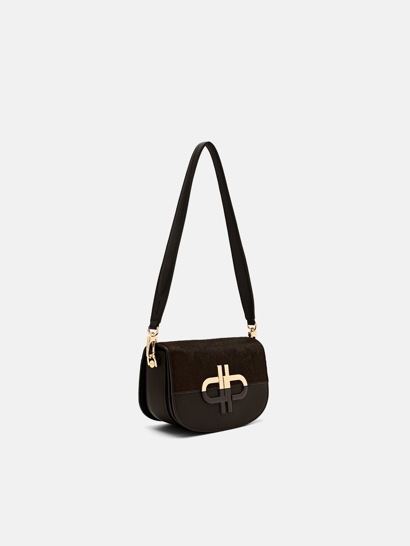 Softly sculpted and tactile, the Duet Calf Hair Shoulder Bag pairs contrasting textures of calf hair and smooth calf leather, letting subtle tonal shifts define its presence. The rounded silhouette carries a quiet confidence, while dual-toned hardware subtly signals refinement without ostentation. Designed to shift with lifestyle needs, the removable shoulder sling transforms it from clutch to shouldered elegance.