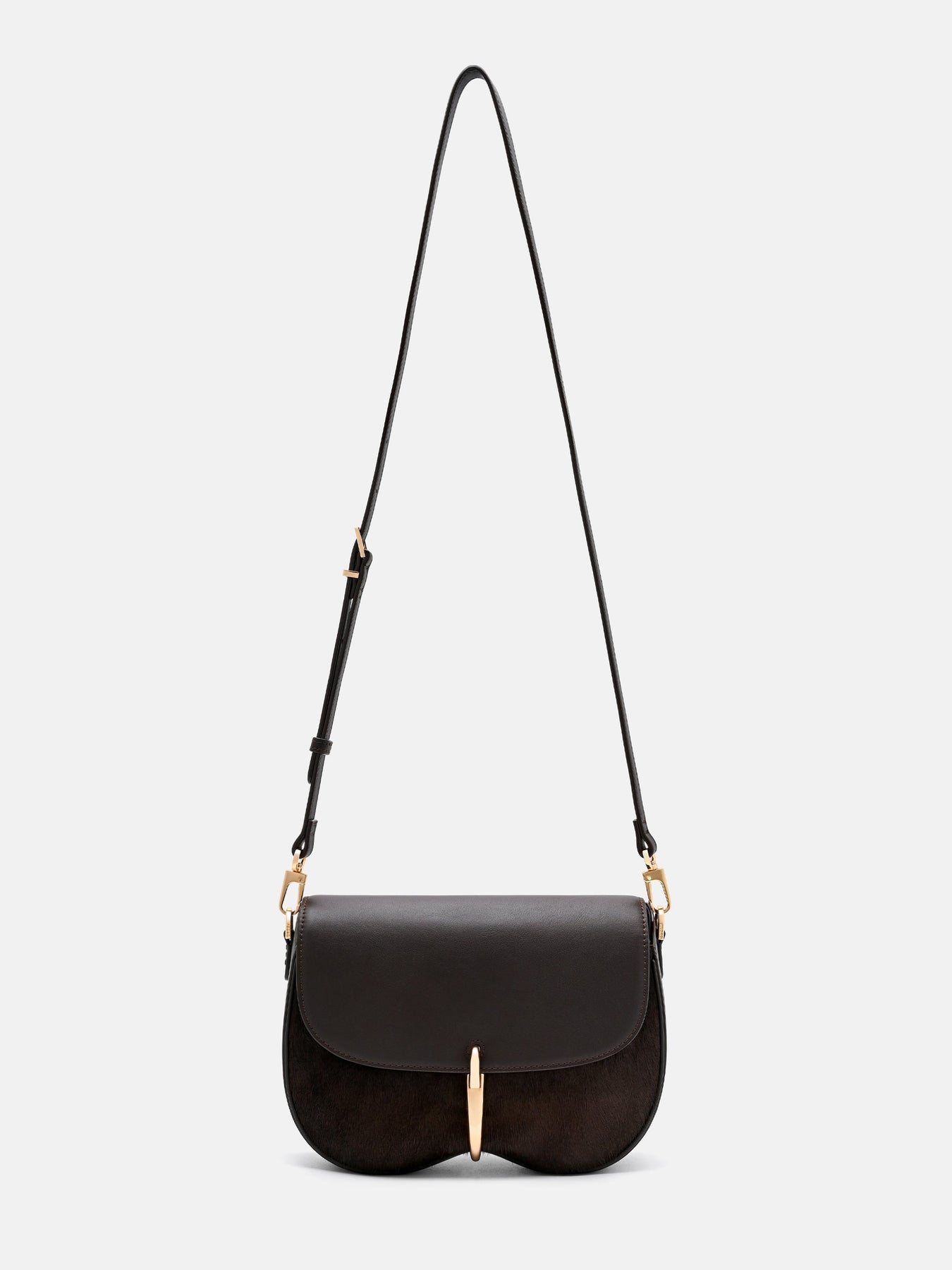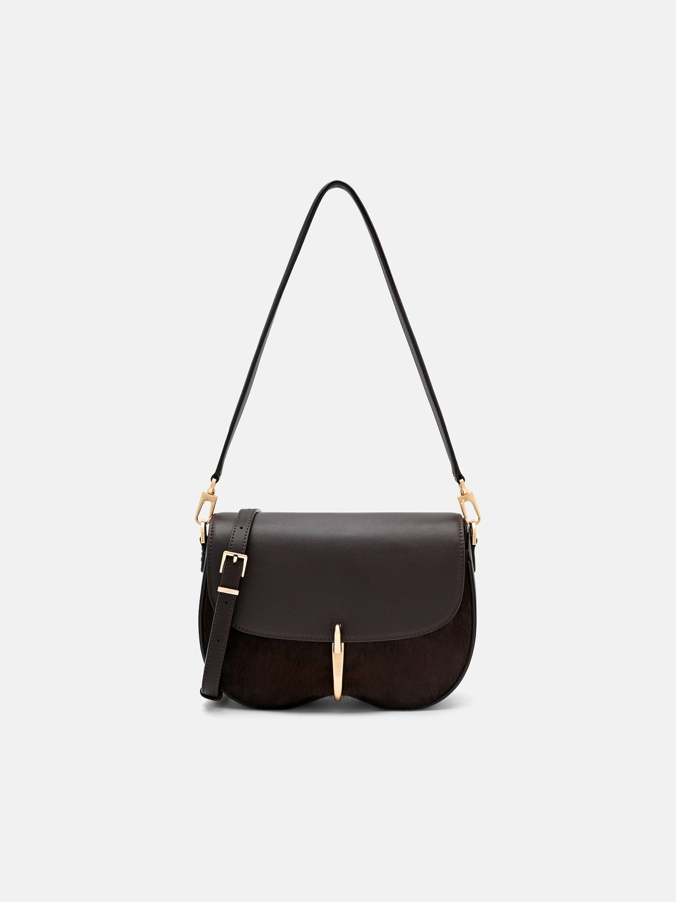 Curved and deliberately sculpted, this shoulder bag balances structured presence with a sense of ease. A subtle cinch at the centre, secured by a sleek turn-lock, defines its form while maintaining fluidity. Minimal gold accents punctuate the design with restrained elegance, allowing the to take centre stage.