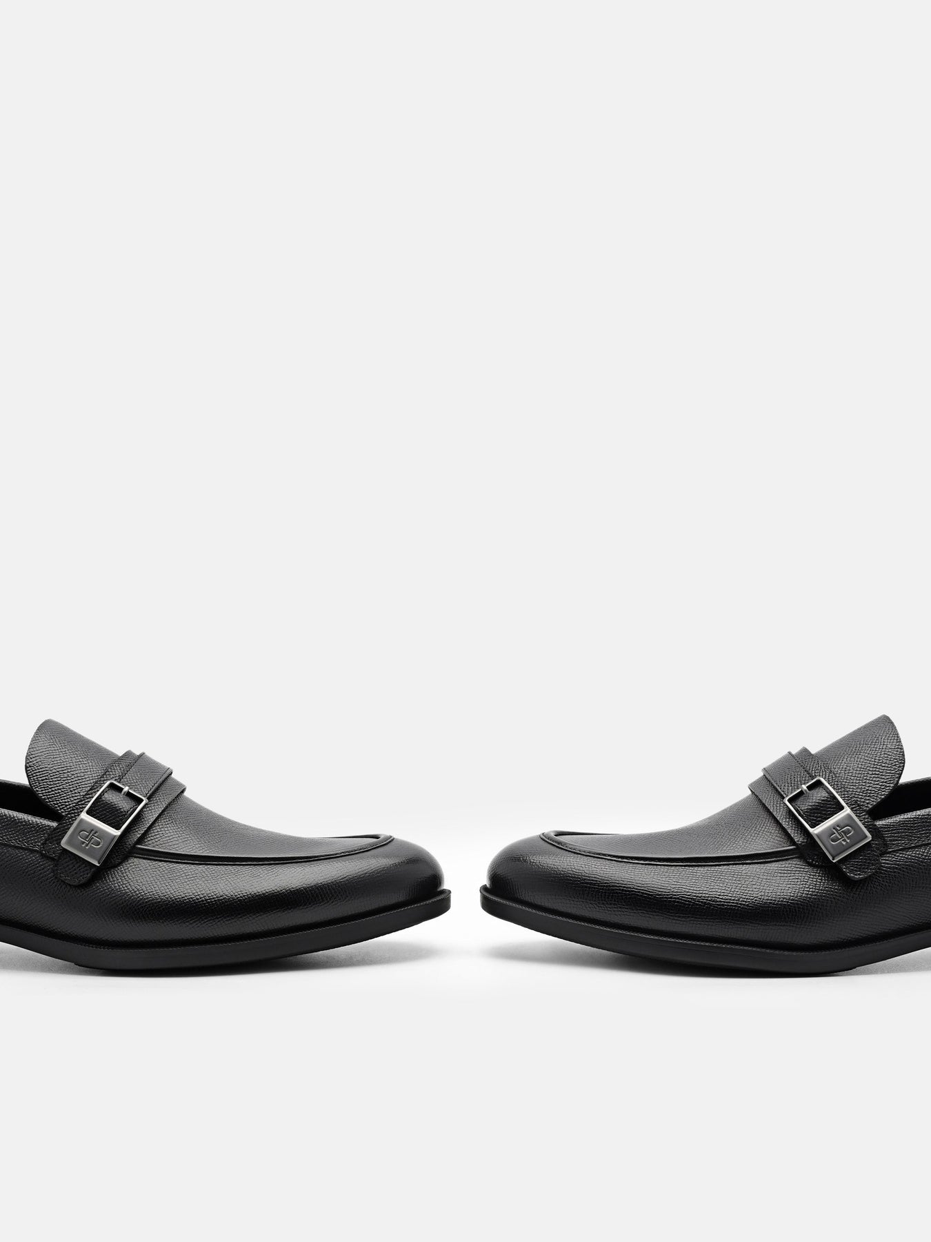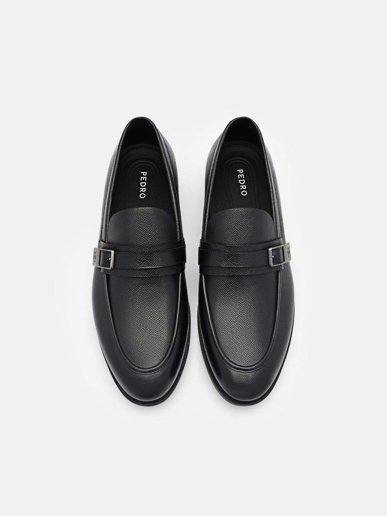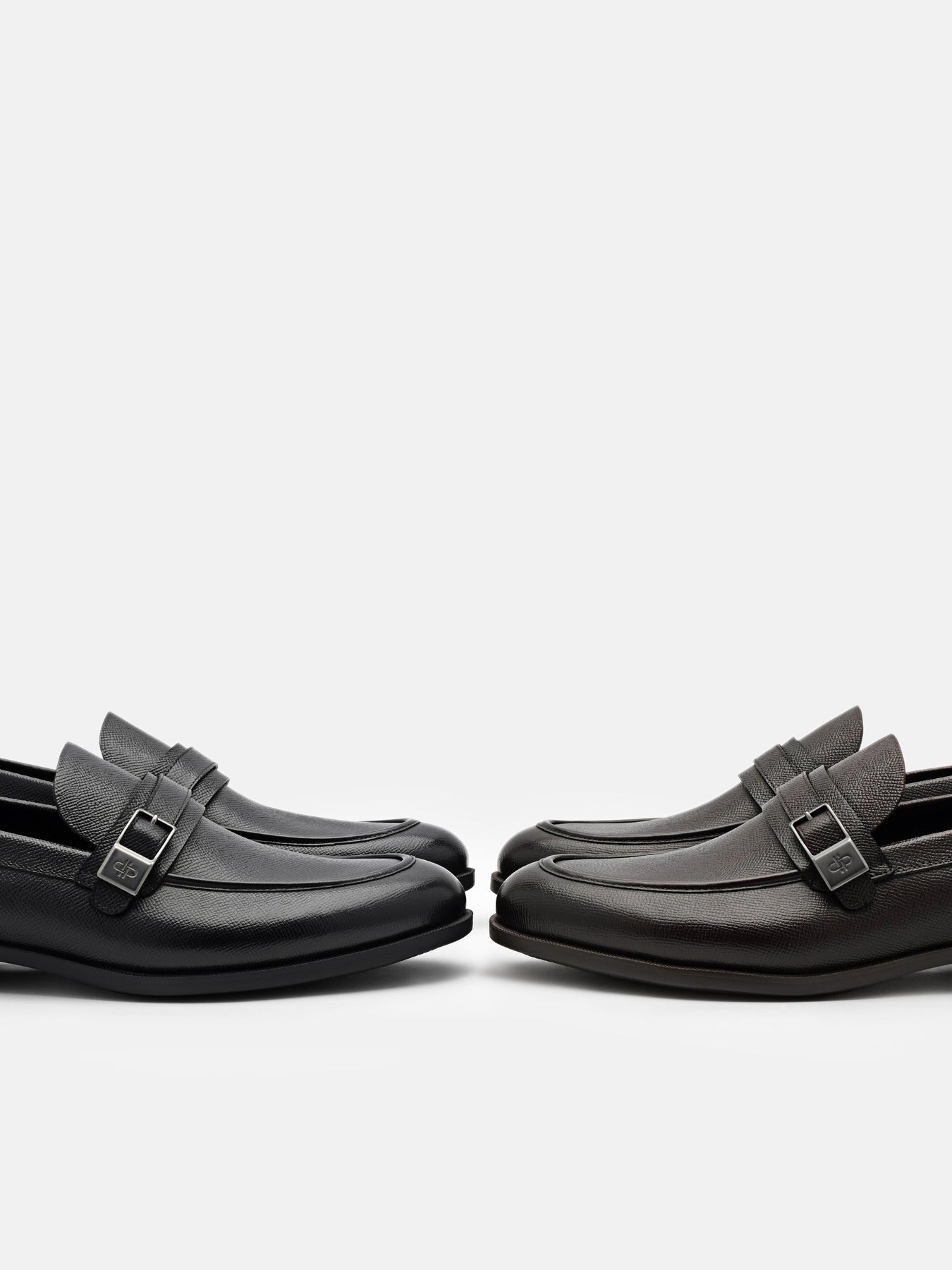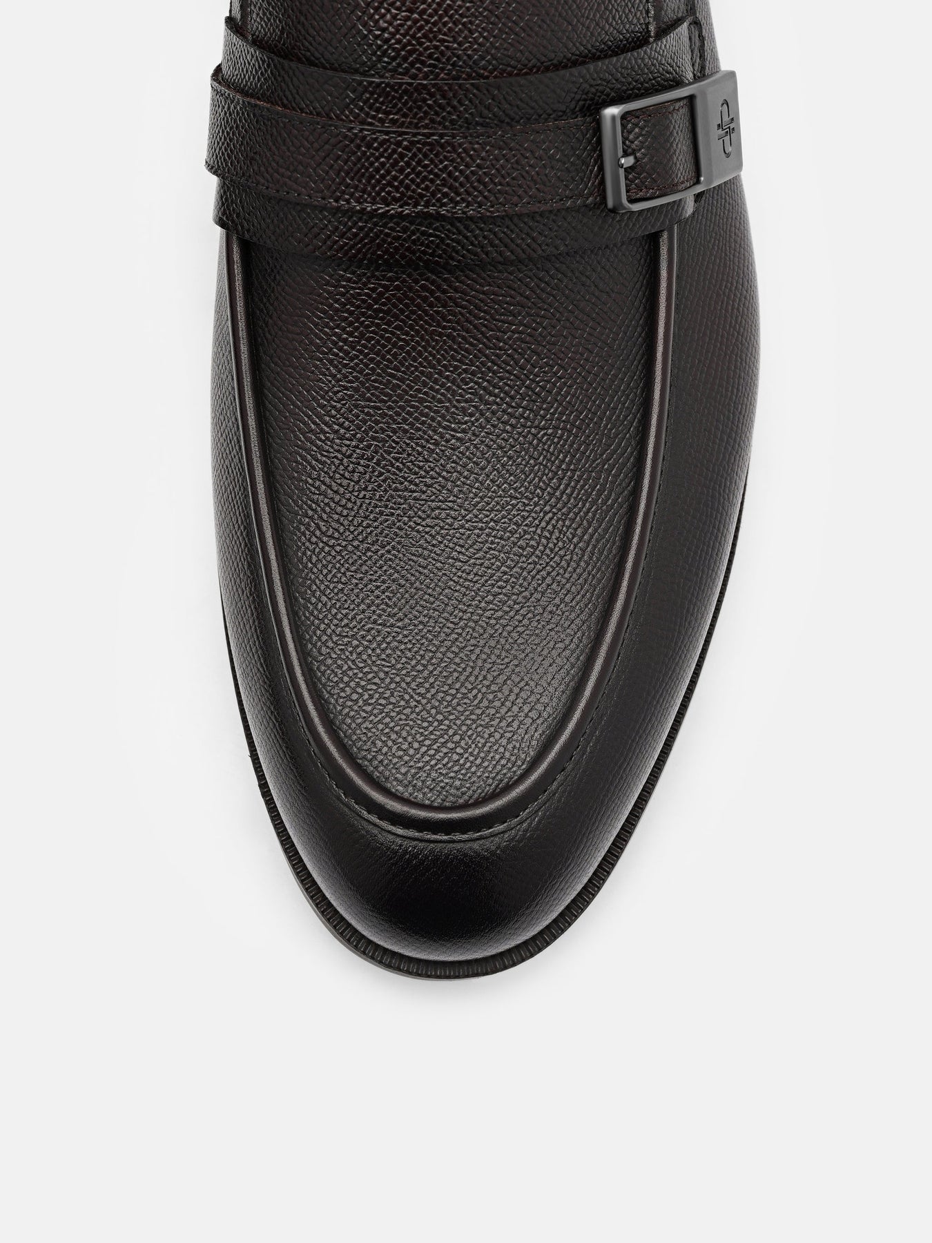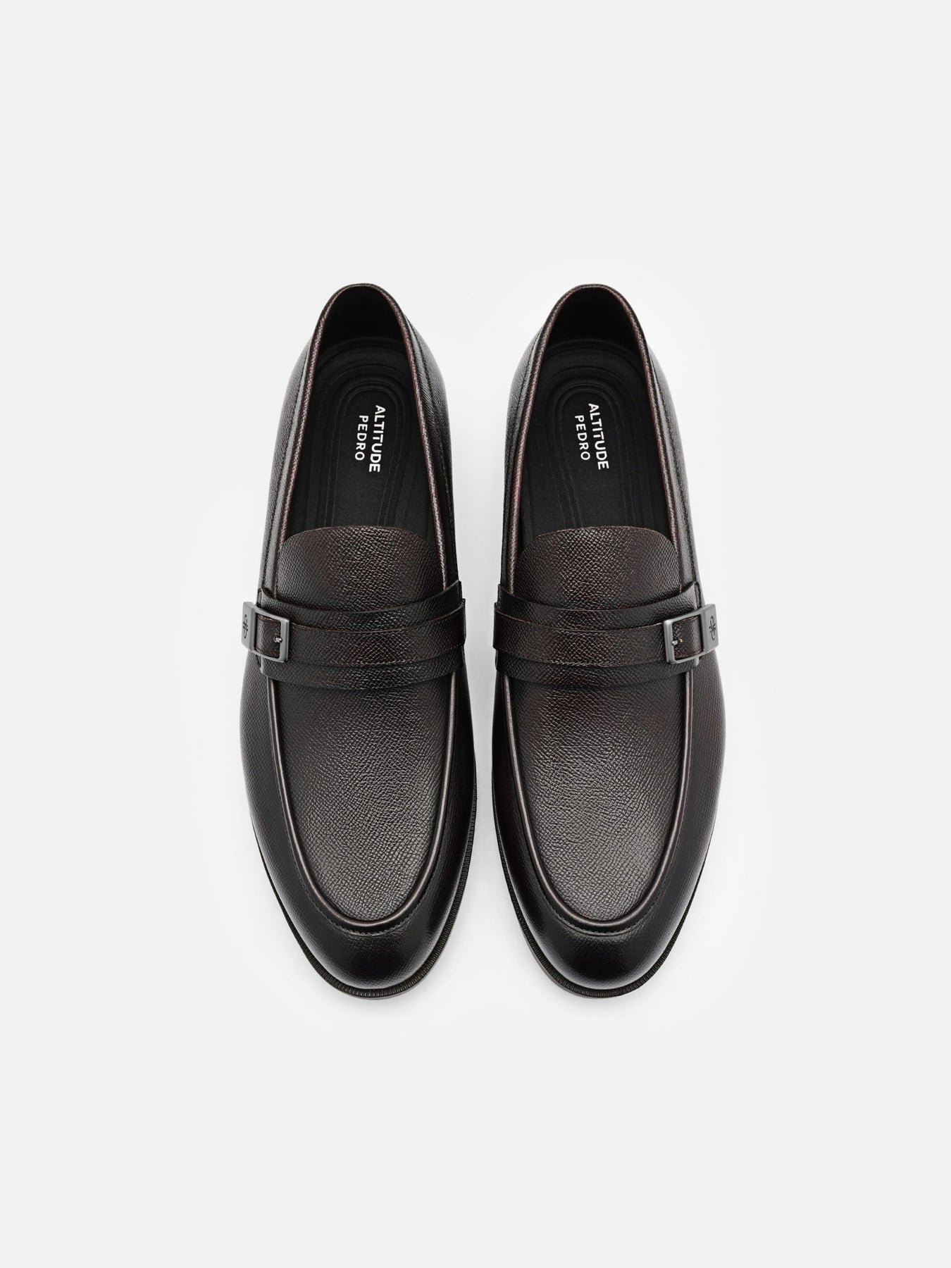 The Altitude Embossed Leather Loafers are crafted from embossed calf leather with a subtle grain. The upper is shaped to a clean silhouette and finished with a modern buckle detail, streamlined with a sense of quiet utility. A lightweight outsole adds ease to movement, balancing structure with flexibility.