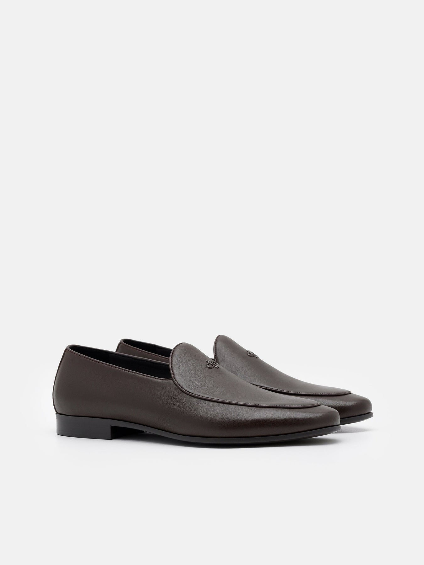 Regular price $129.90A clean, modern silhouette in supple calf leather, the loafers feature a minimalist upper accented with subtle monogram hardware. Curved lines and precise cuts create a quietly refined profile, balancing contemporary simplicity with enduring craftsmanship.