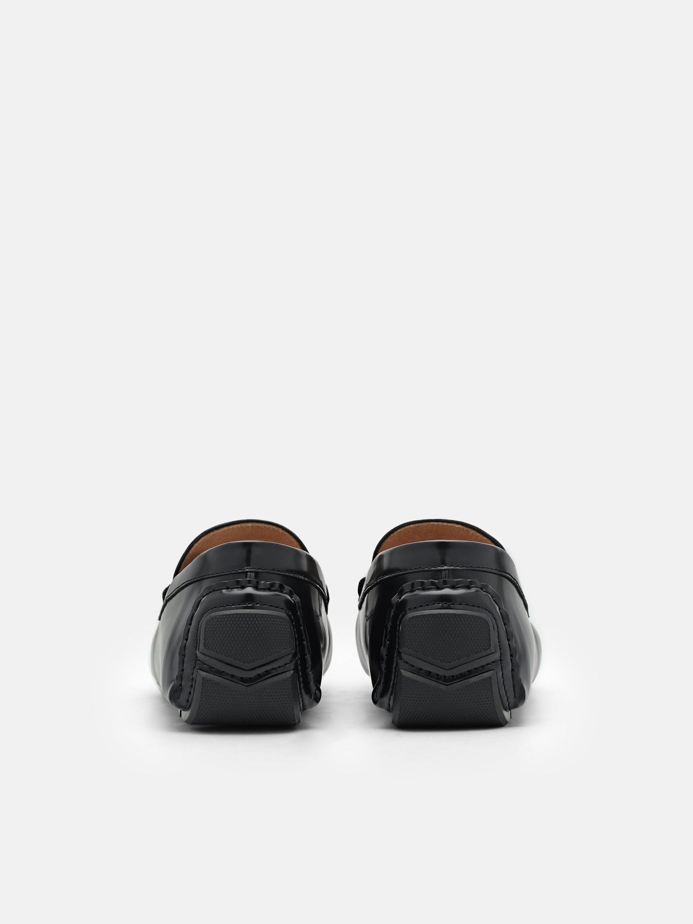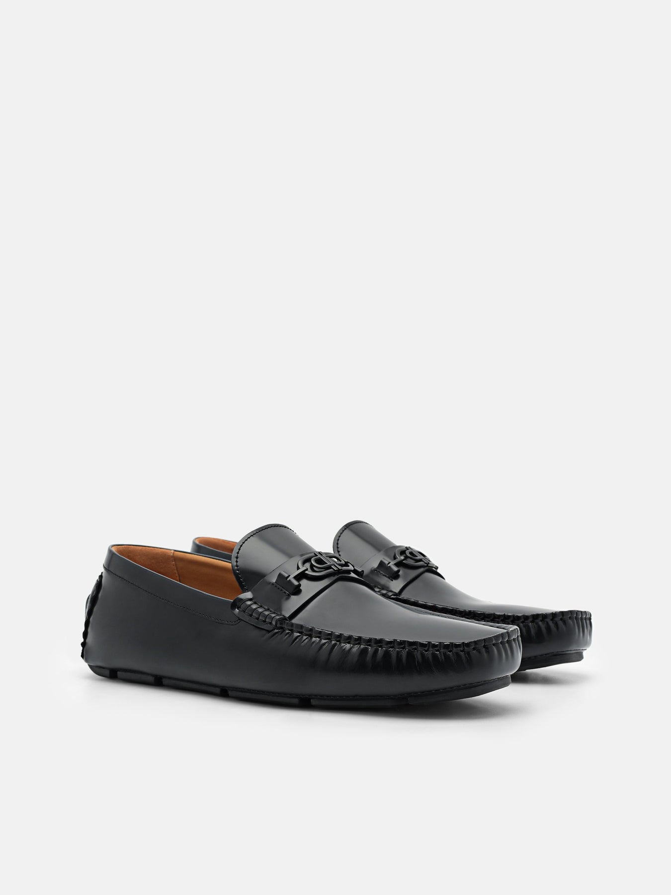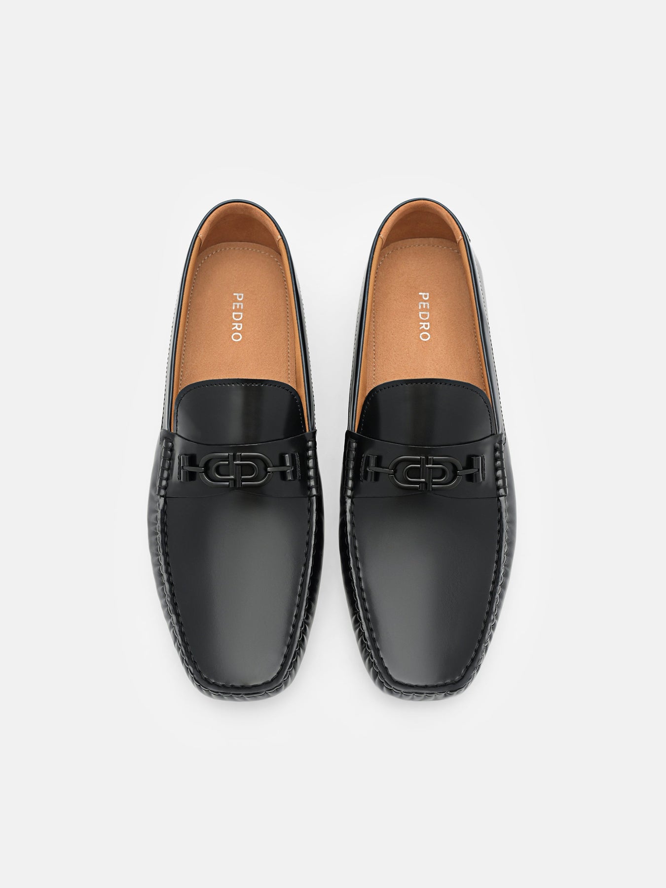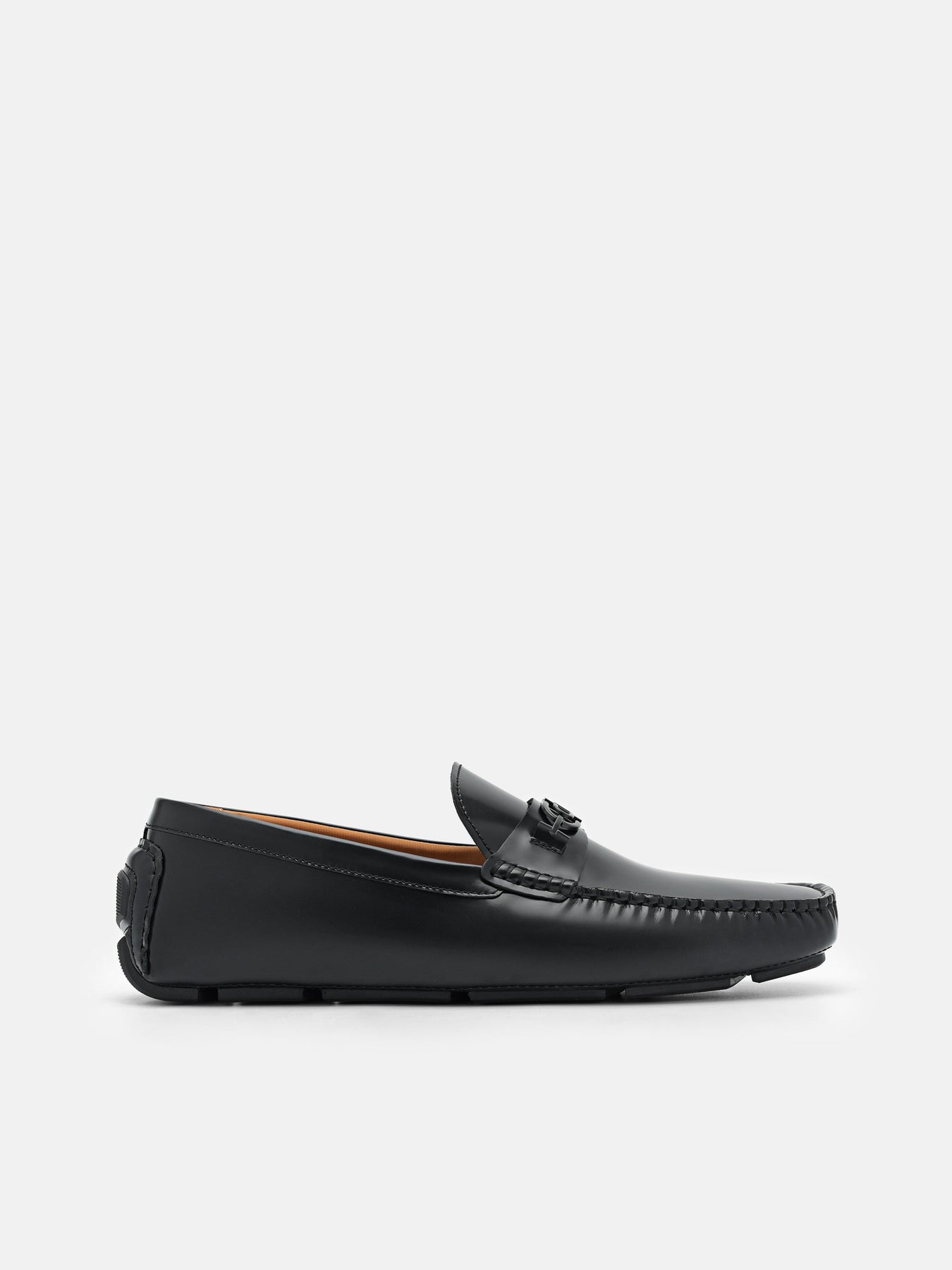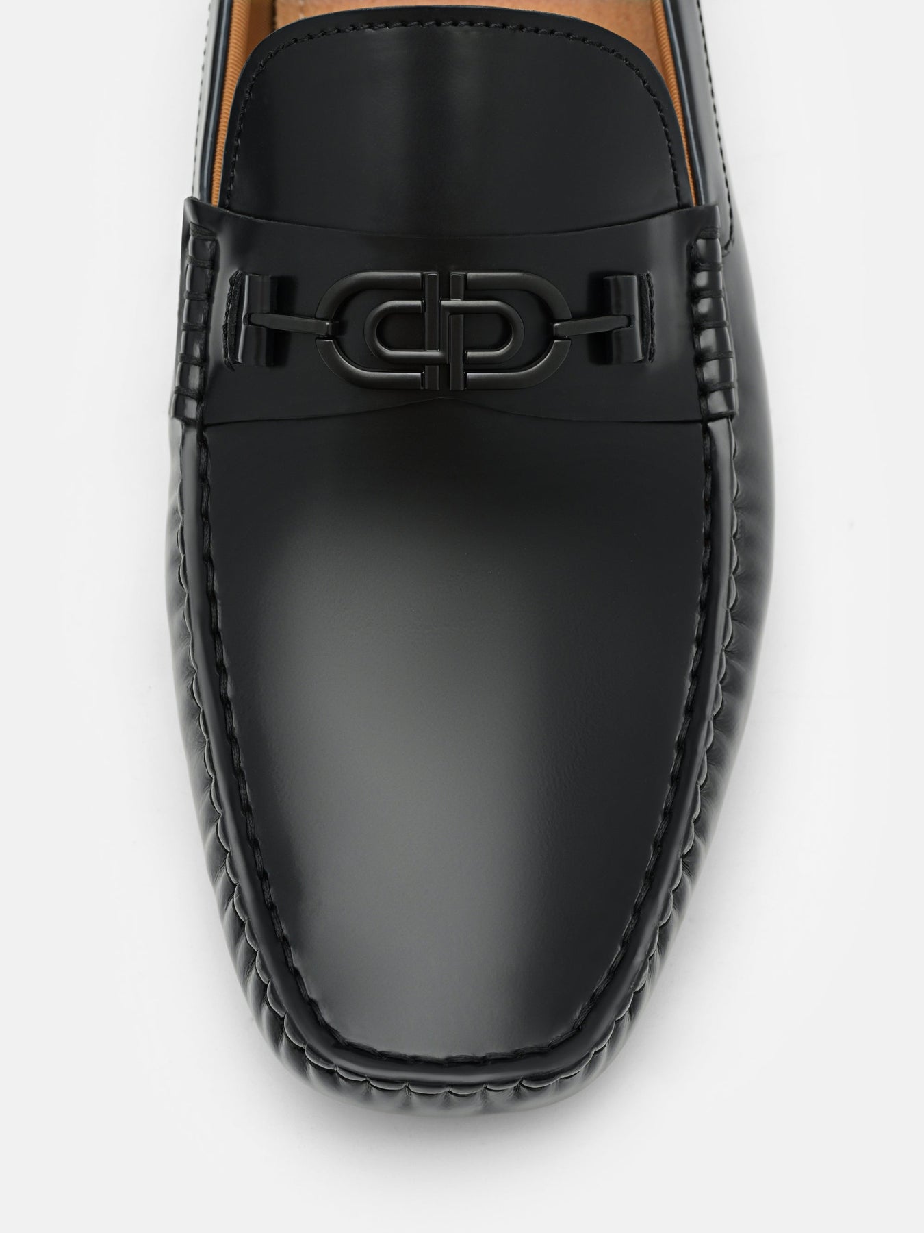 Regular price $119.90Crafted in boxed calf leather with a structured yet supple feel, the Leather Horsebit Driving Shoes feature moc toe detailing with natural wrinkling, adding texture without noise. A nod to tradition comes in the penny loafer structure, and the monogrammed horsebit hardware with clean proportions anchor it firmly in the now.
