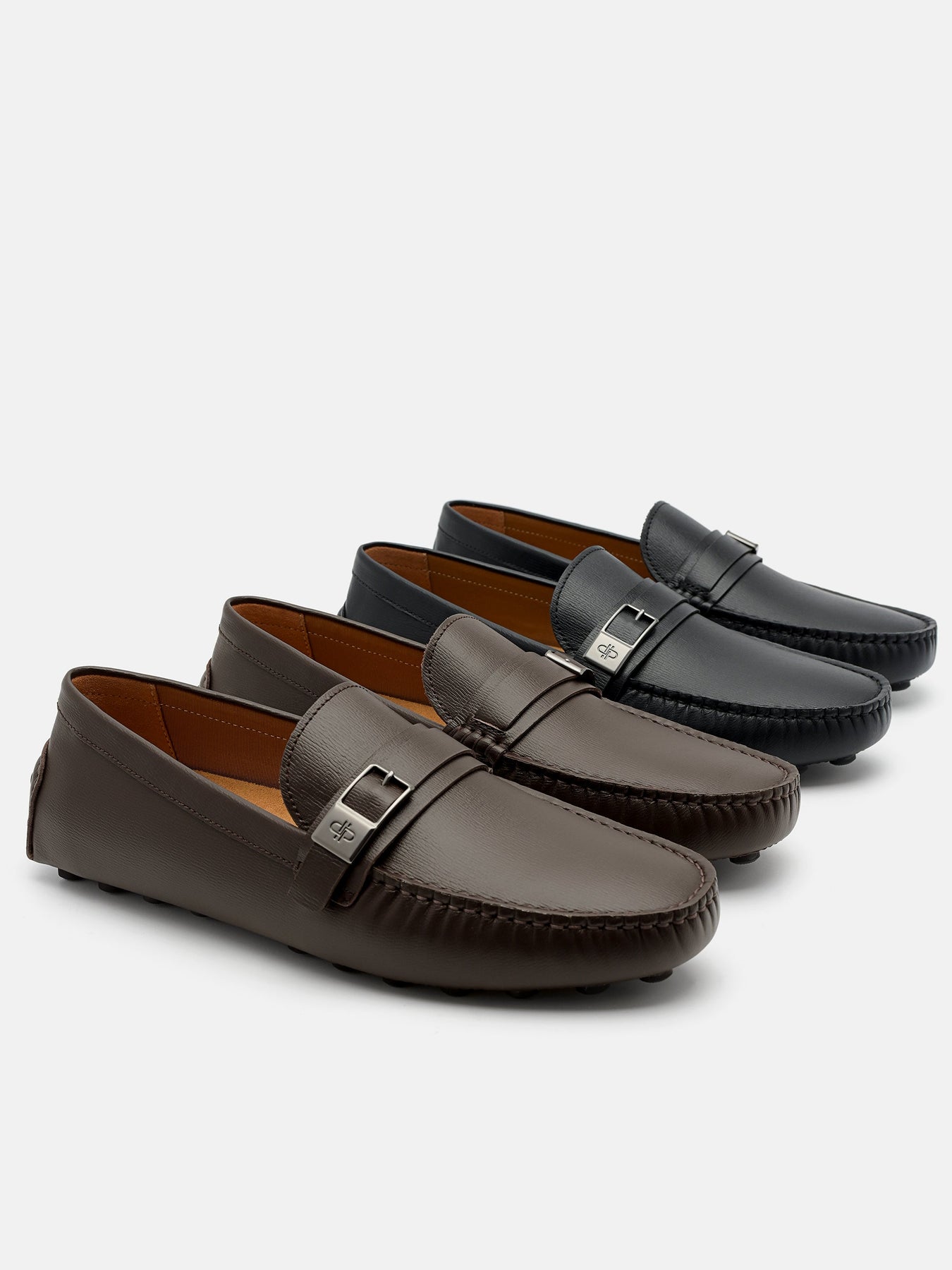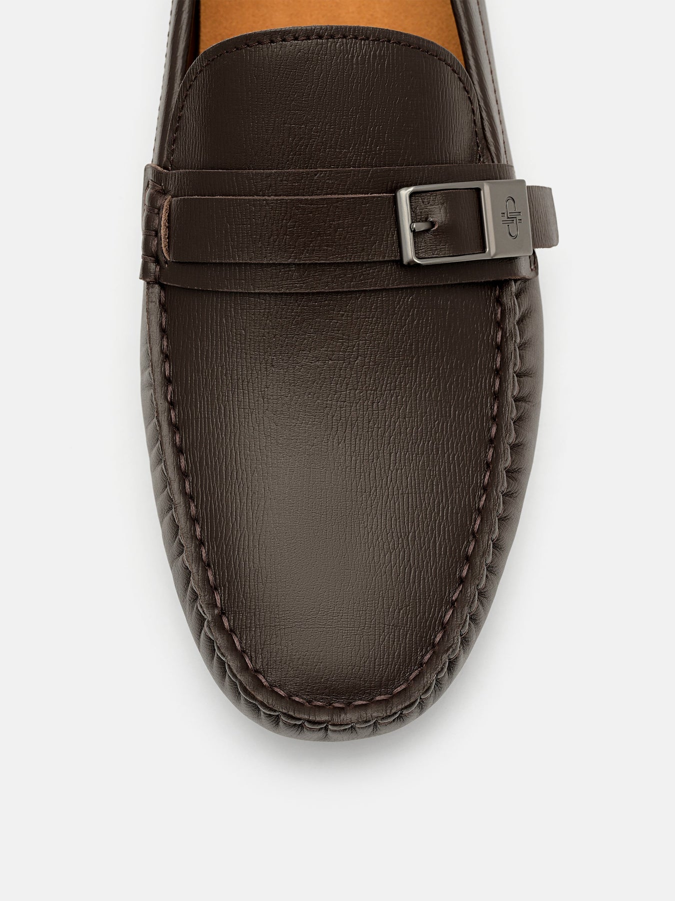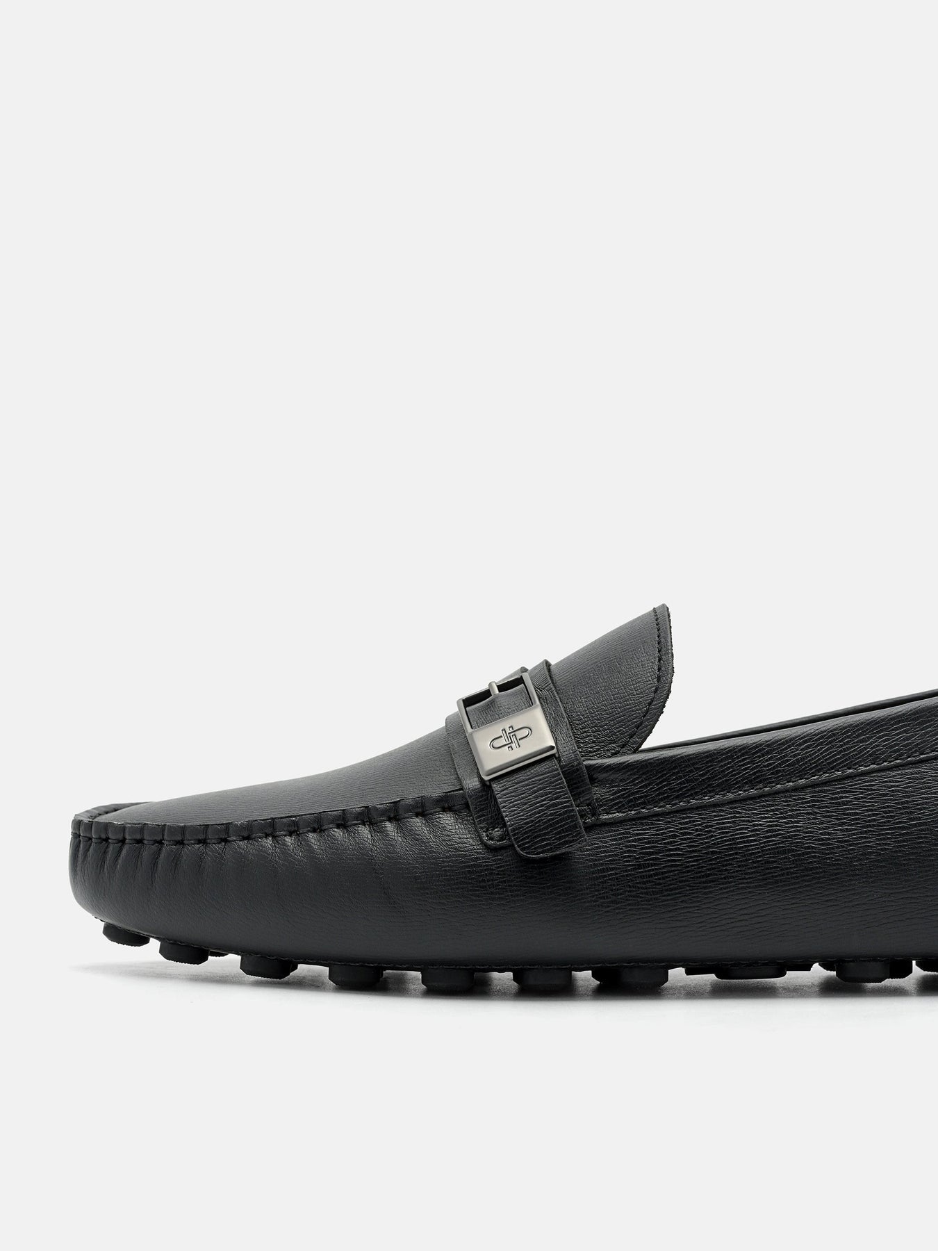 A fresh take on the driving shoe, crafted from richly embossed cow leather that adds texture without overwhelming. The low-profile silhouette is grounded by a pebbled outsole, while the buckle hardware introduces a refined contrast to classic forms, creating a balance between heritage and contemporary cool.