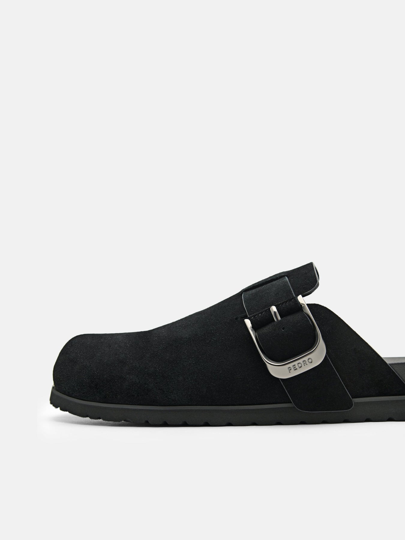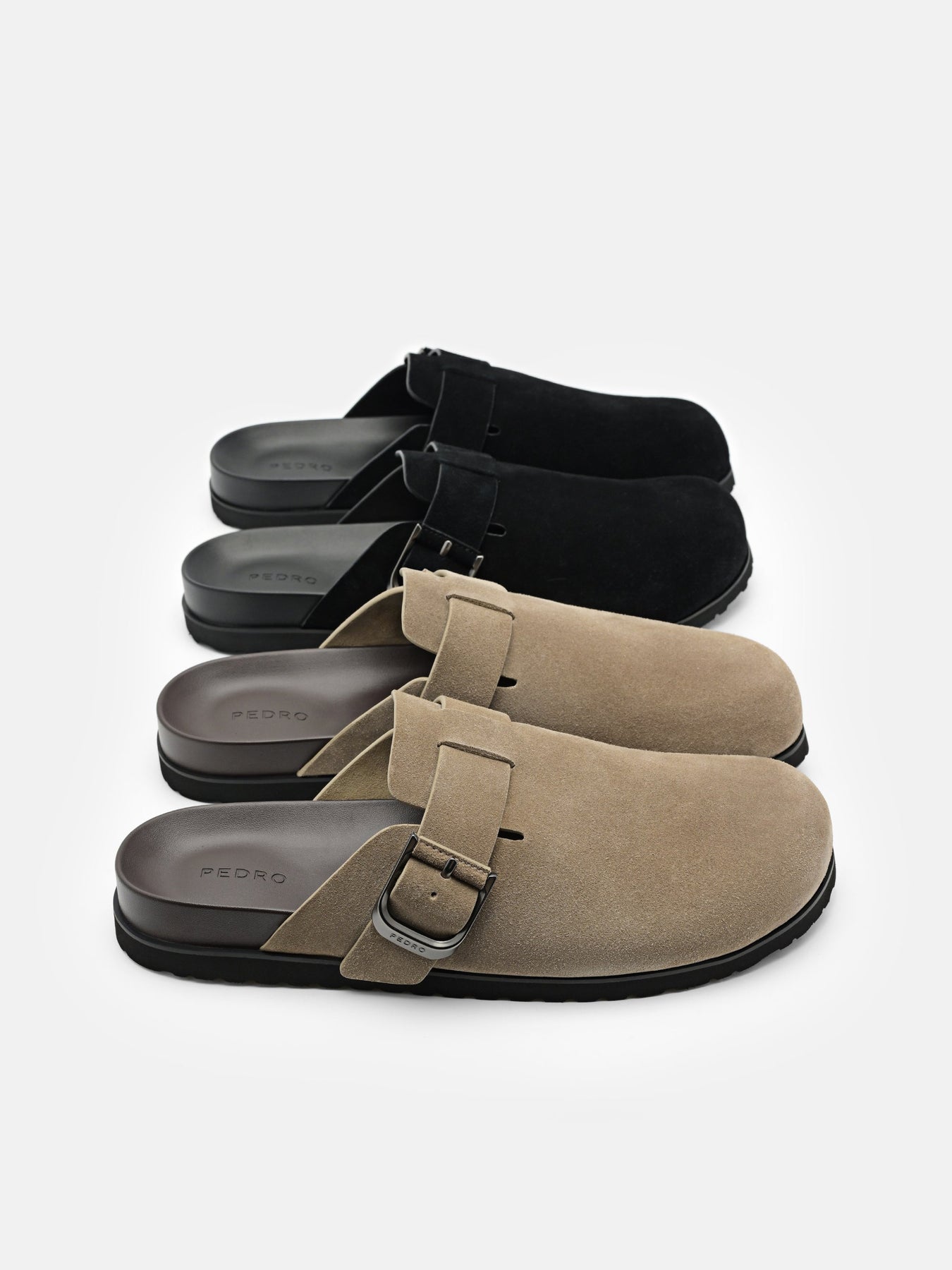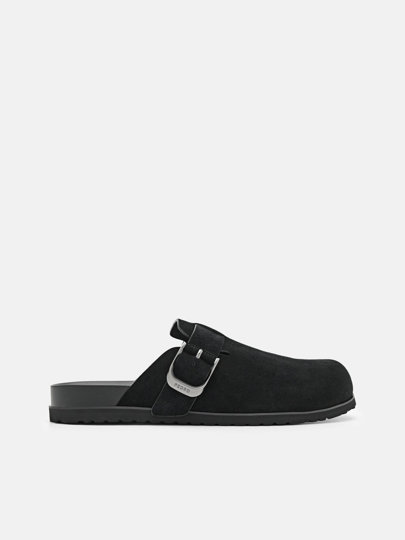 Regular price $99.90The Helix Suede Mules offer a sculptural take on the slip-on, where tactile materiality meets engineered form. A supple suede upper lends softness to the silhouette, while the oversized buckle punctuates the design with industrial precision. Set on a chunky contoured footbed, the mule plays with proportion in all the right ways.