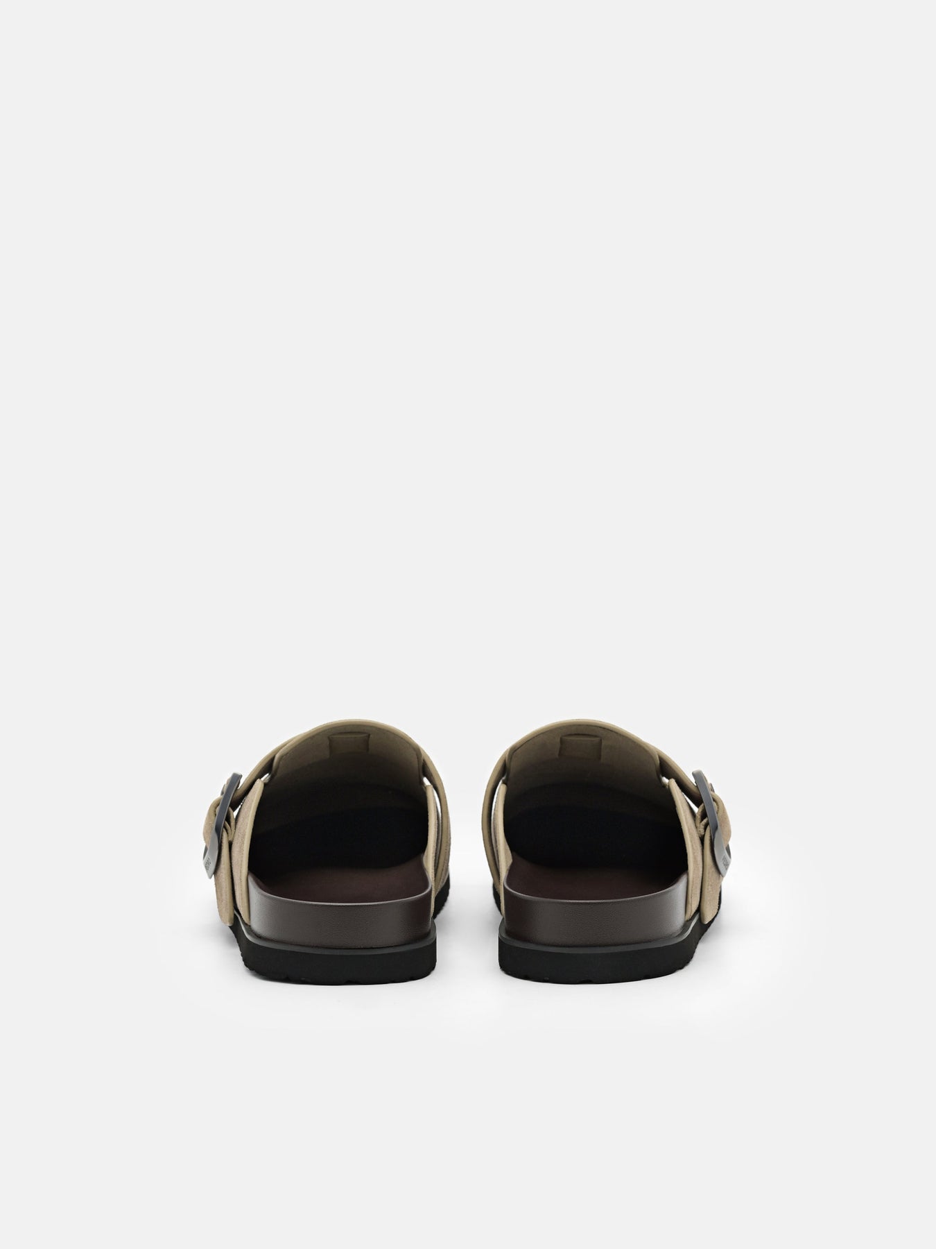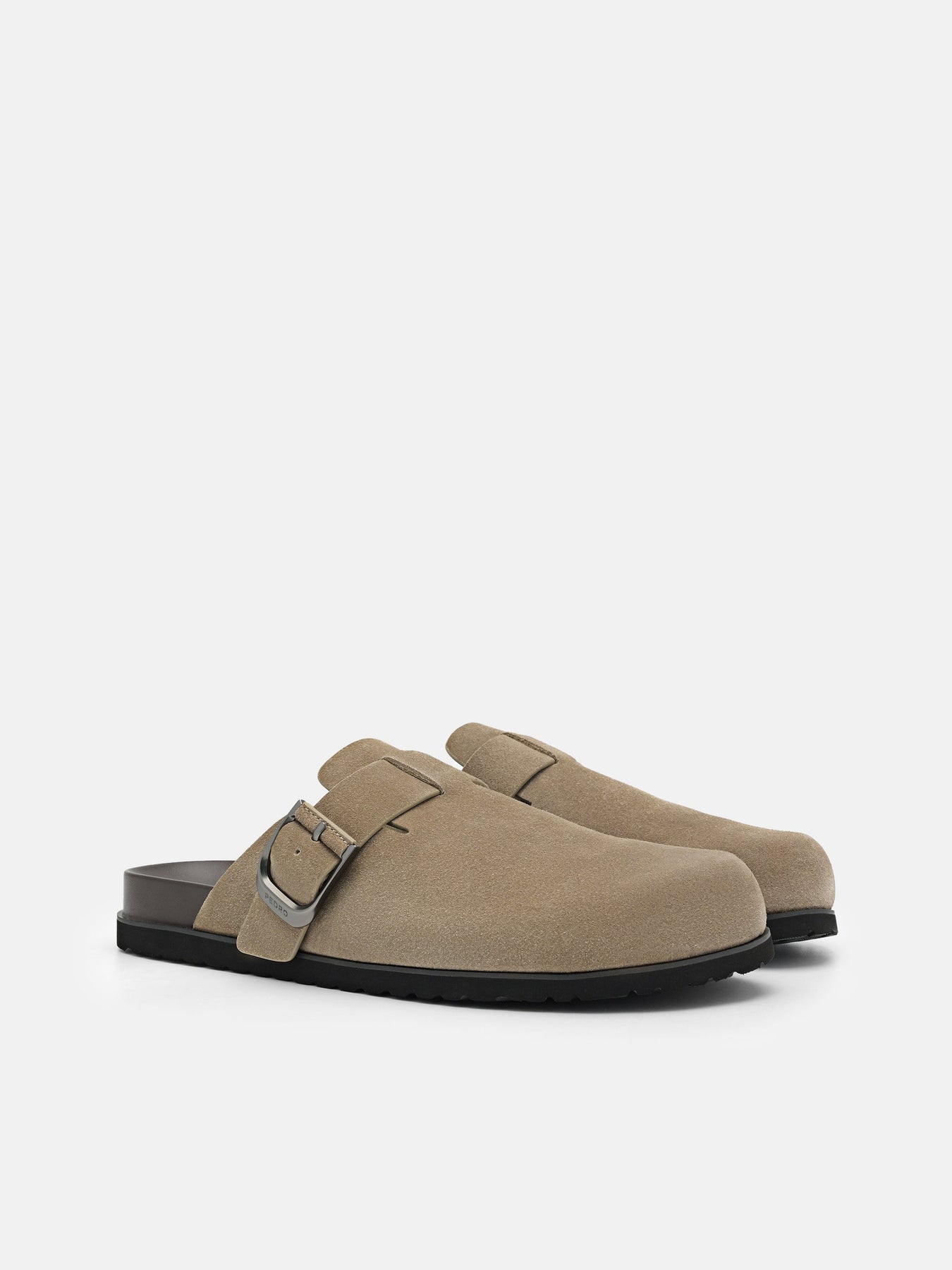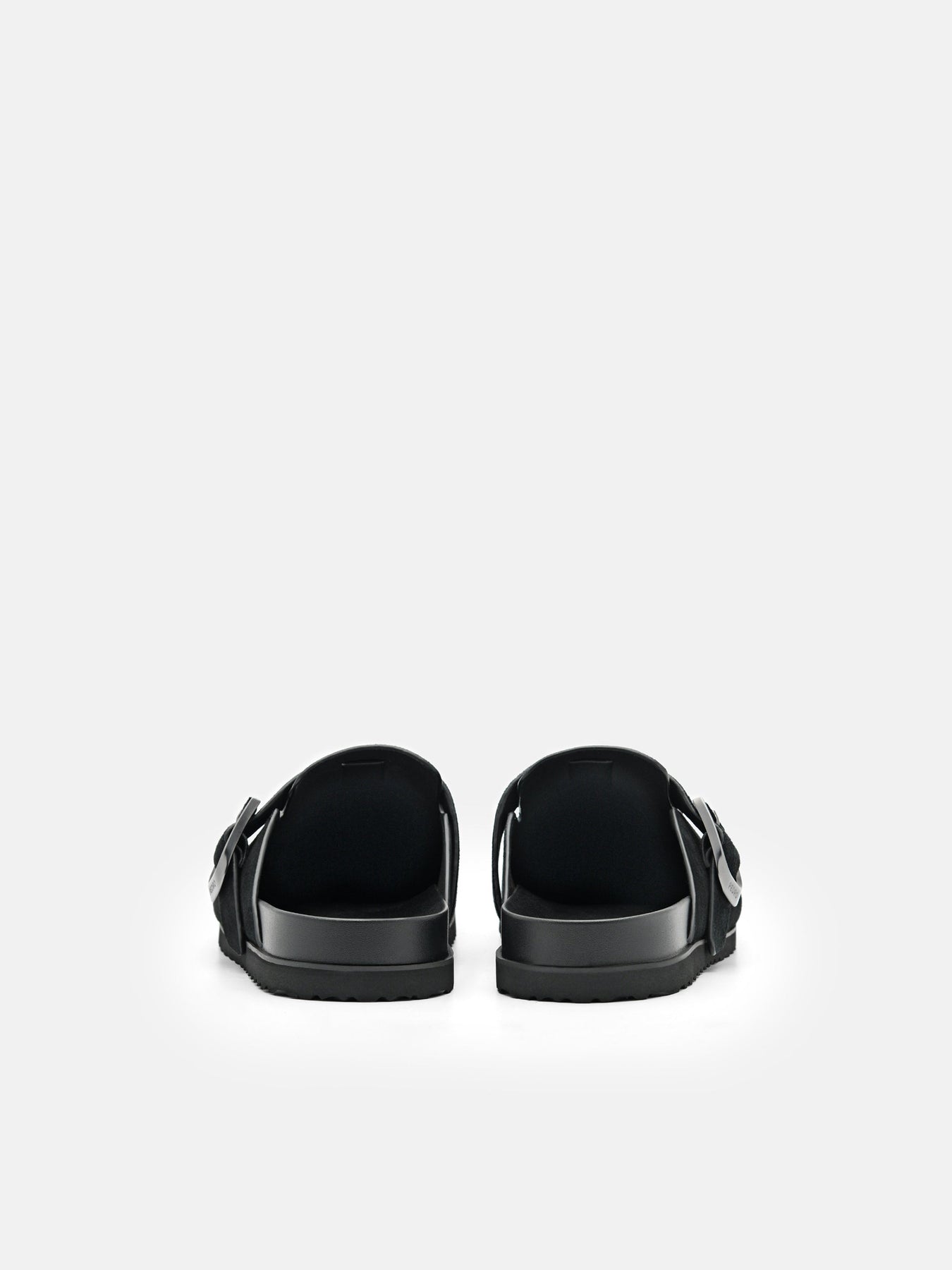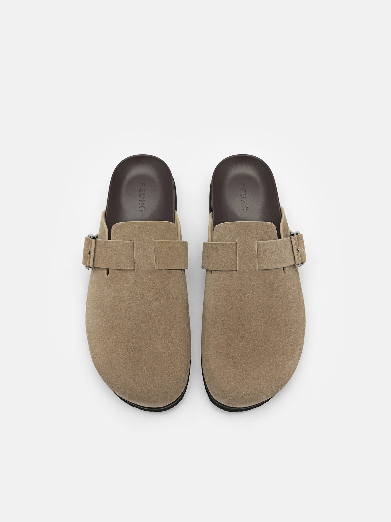 Regular price $99.90The Helix Suede Mules offer a sculptural take on the slip-on, where tactile materiality meets engineered form. A supple suede upper lends softness to the silhouette, while the oversized buckle punctuates the design with industrial precision. Set on a chunky contoured footbed, the mule plays with proportion in all the right ways.