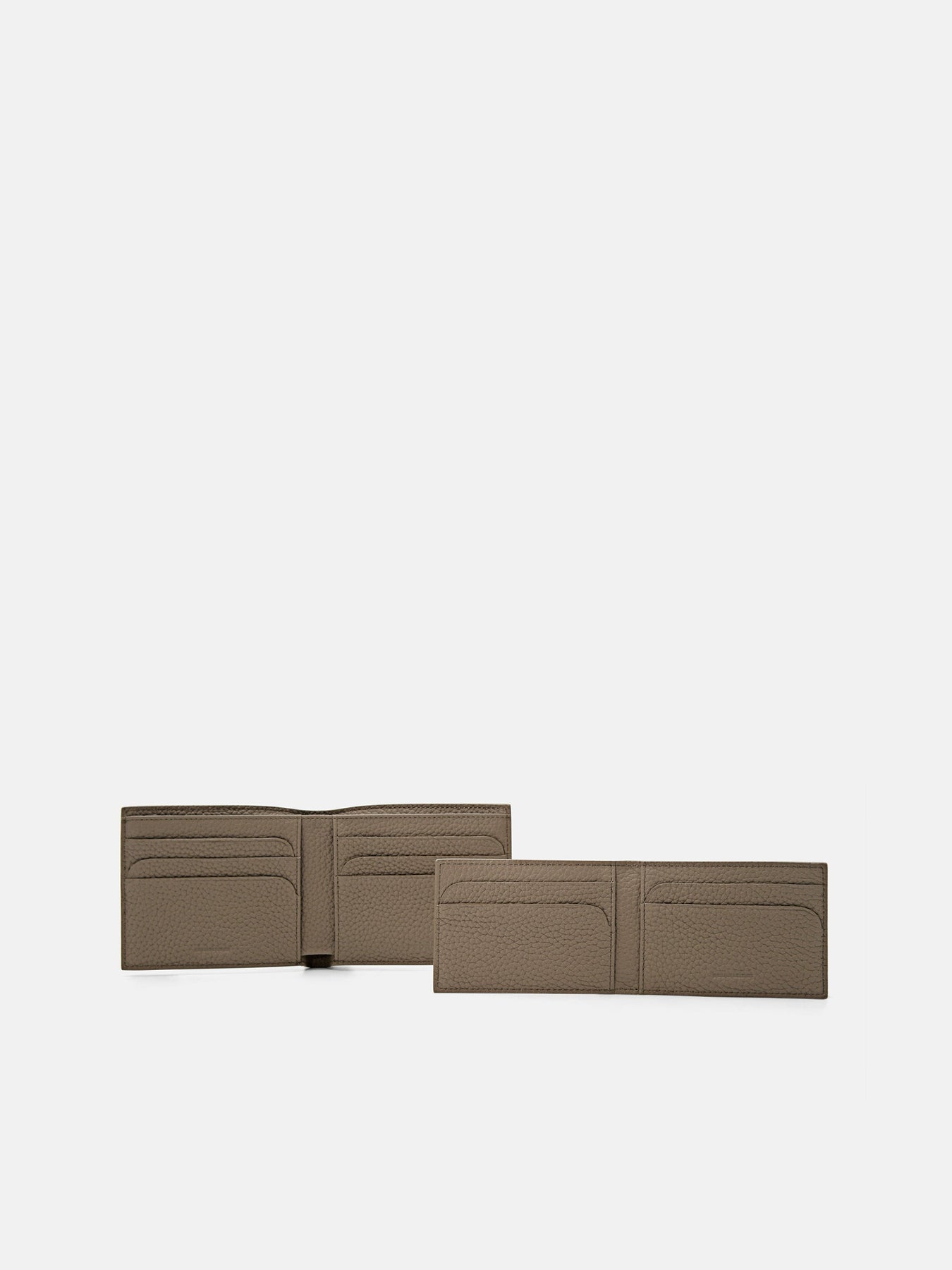 The Embossed Leather Bi-Fold Wallet with Insert strips things back without losing intent. Crafted from textured calf leather, its clean exterior speaks in low tones, minimal yet tactile. Inside, a removable insert adds modular functionality, offering extra card storage without disrupting the silhouette.