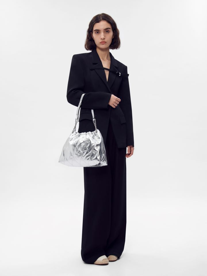 Elevate casual-chic with the Kaia Quilted Shoulder Bag’s modern flair, metallic accents, and spacious, organized design.