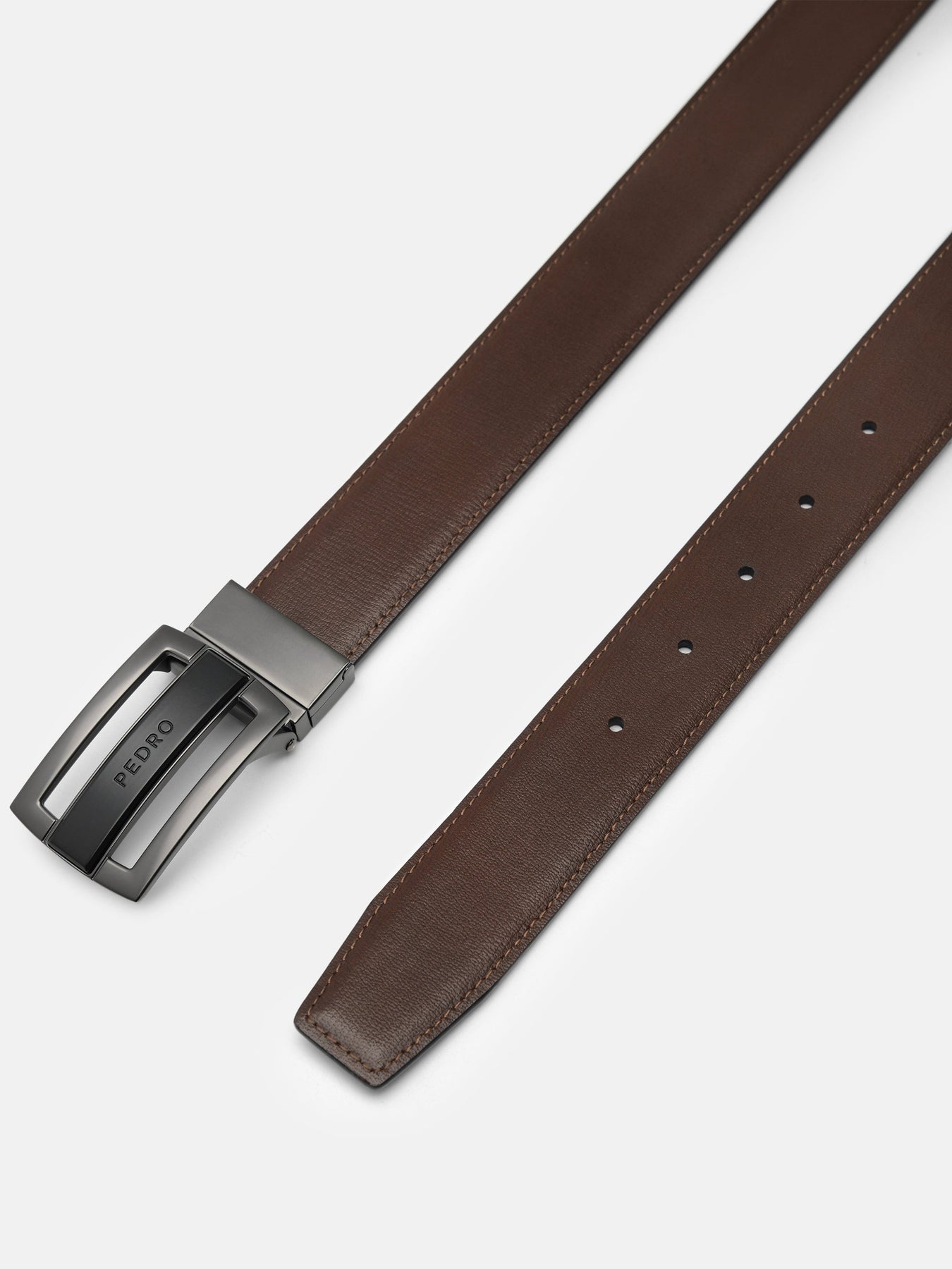 Regular price $69.90The Embossed Leather Automatic Belt is built for duality, offering two distinct looks in one streamlined design. Crafted from cow leather in contrasting black and brown tones, each side features a unique texture, adding depth without excess. The reversible construction and classic tang closure deliver both versatility and structure.