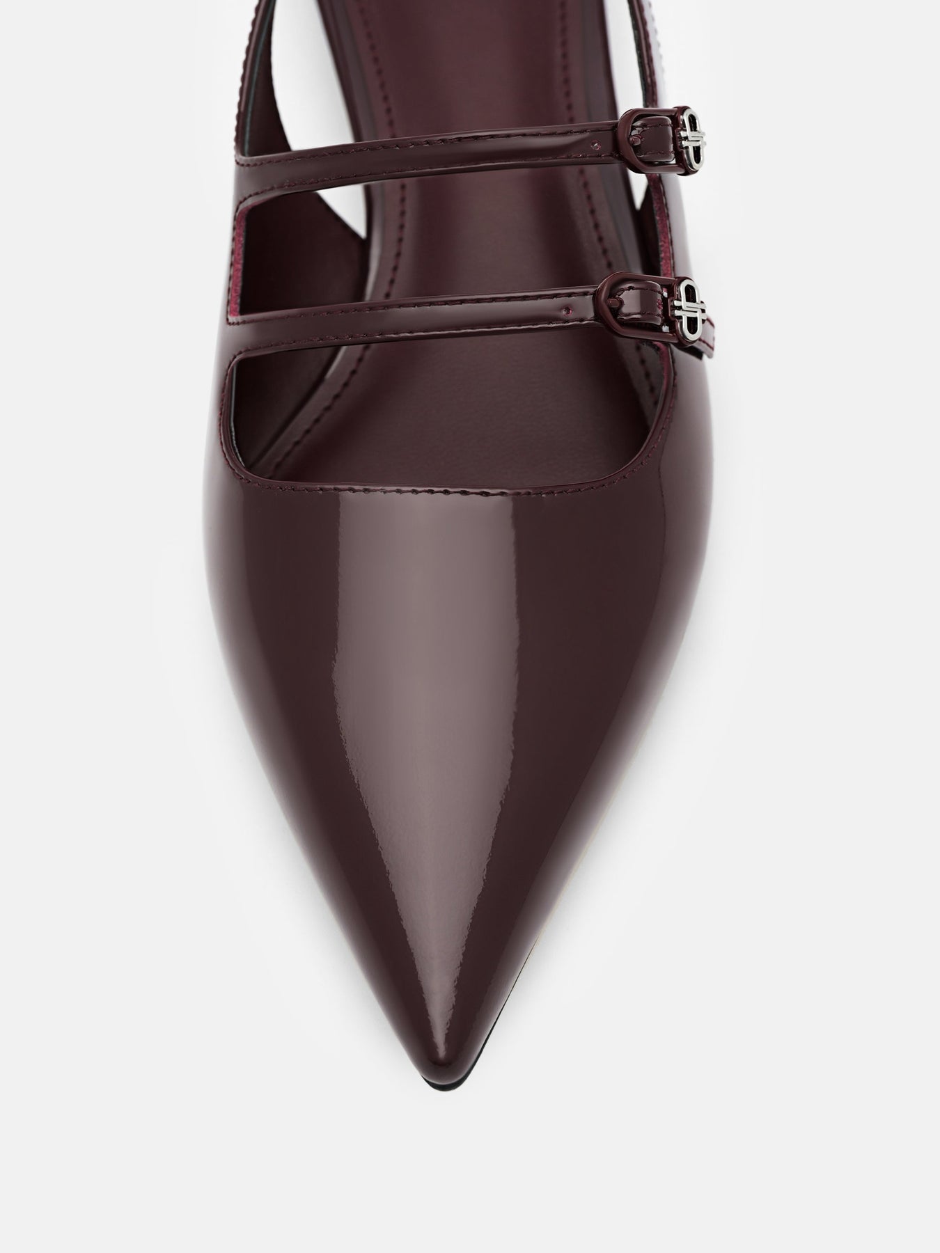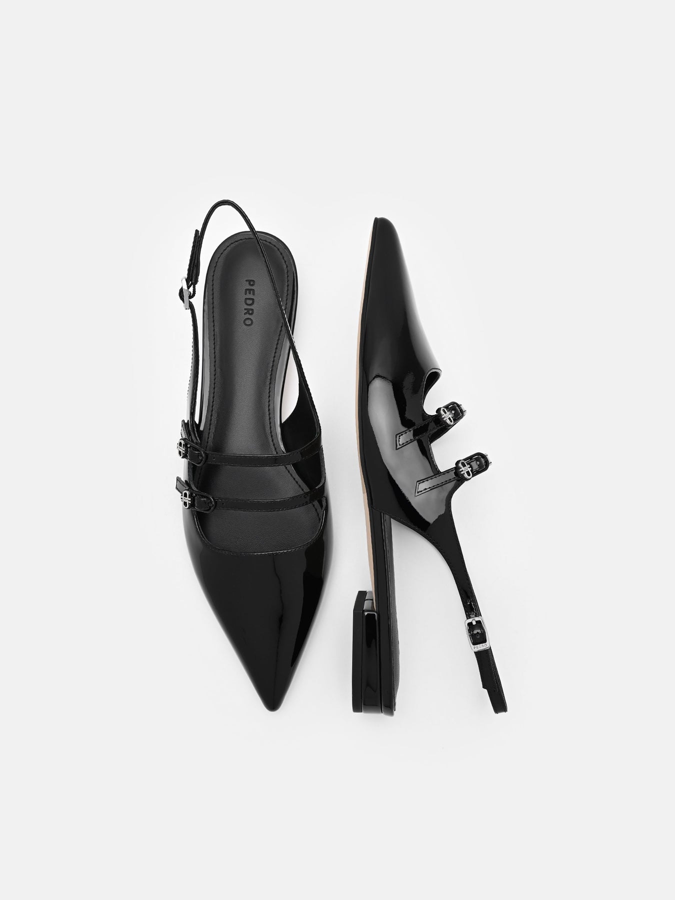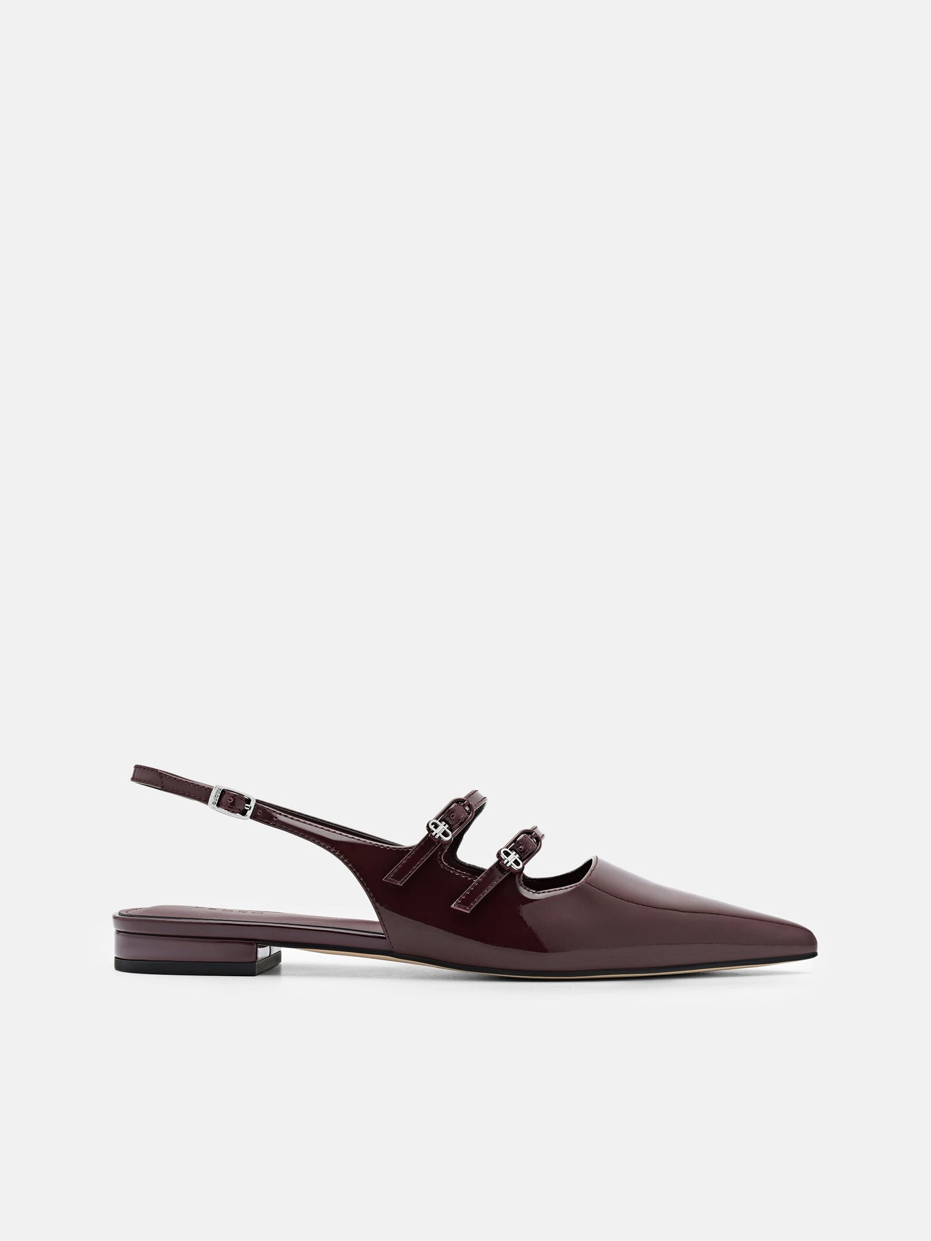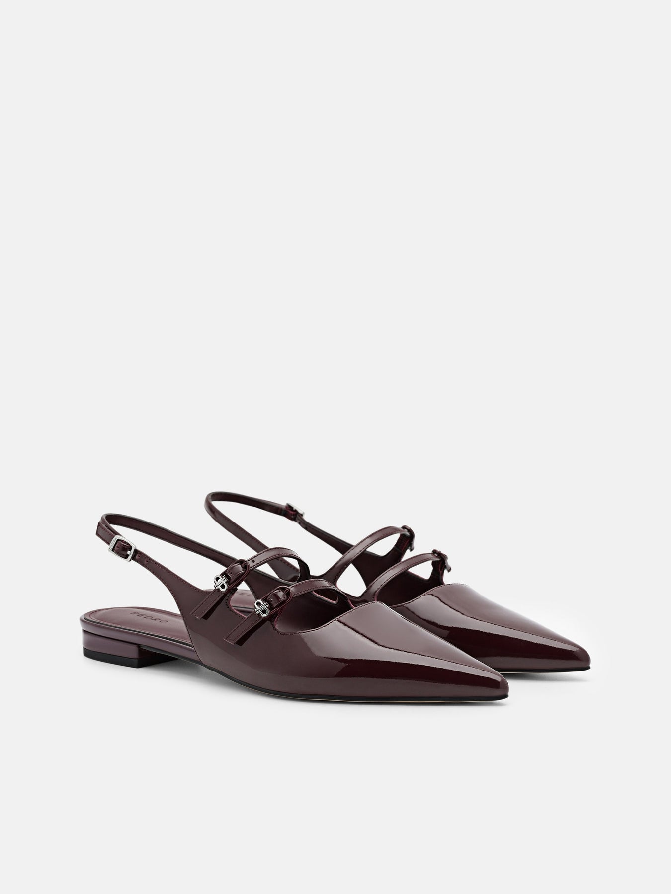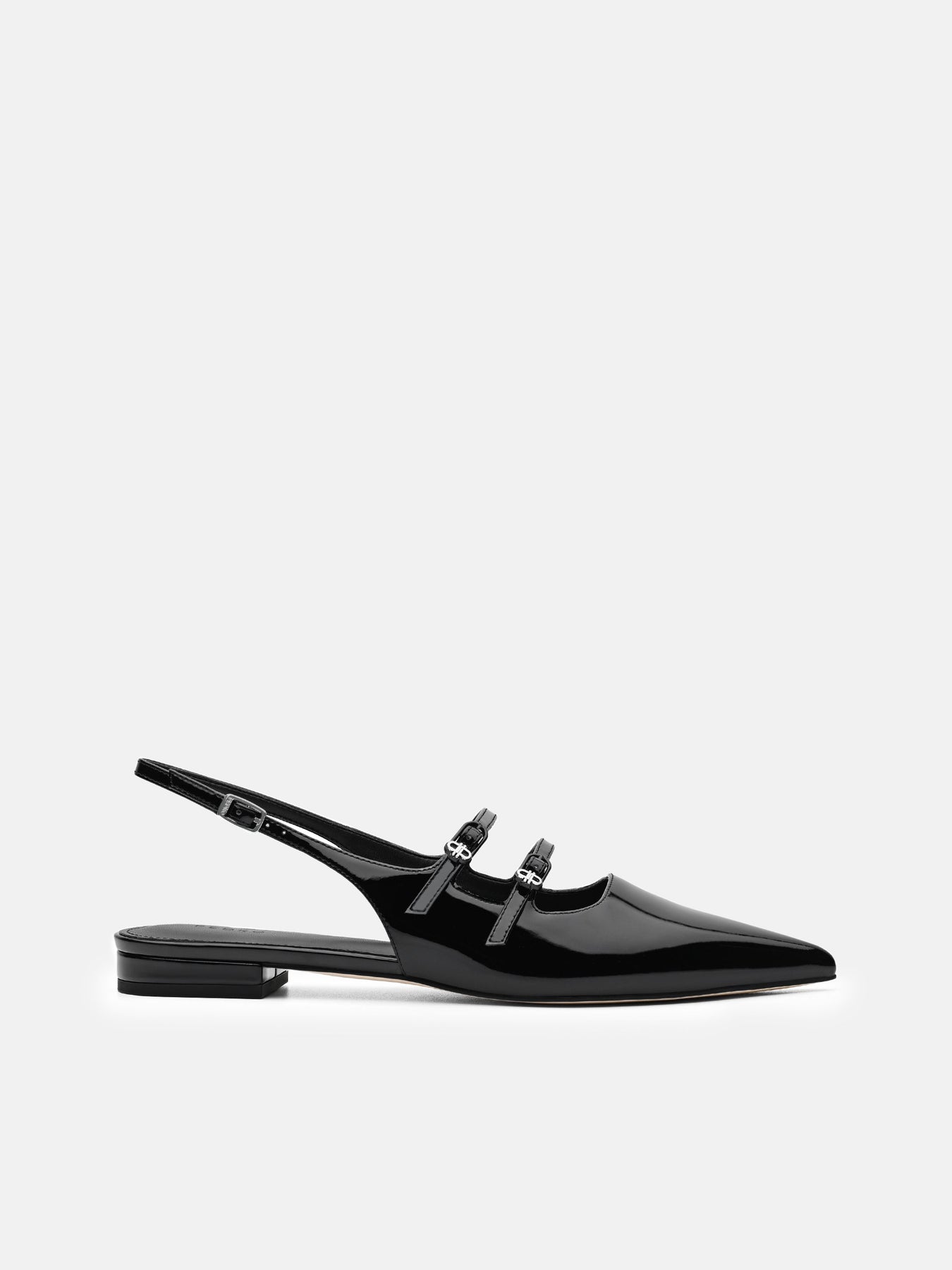 Regular price $79.90Gloss meets precision in the Patent Leather Slingback Ballerina Flats. Crafted from glossy patent calf leather, the pointed toe sharpens the silhouette, while the strappy upper and slingback design introduce a modern twist on classic ballet forms. The balance between sleek shine and architectural restraint makes these flats a subtle statement.