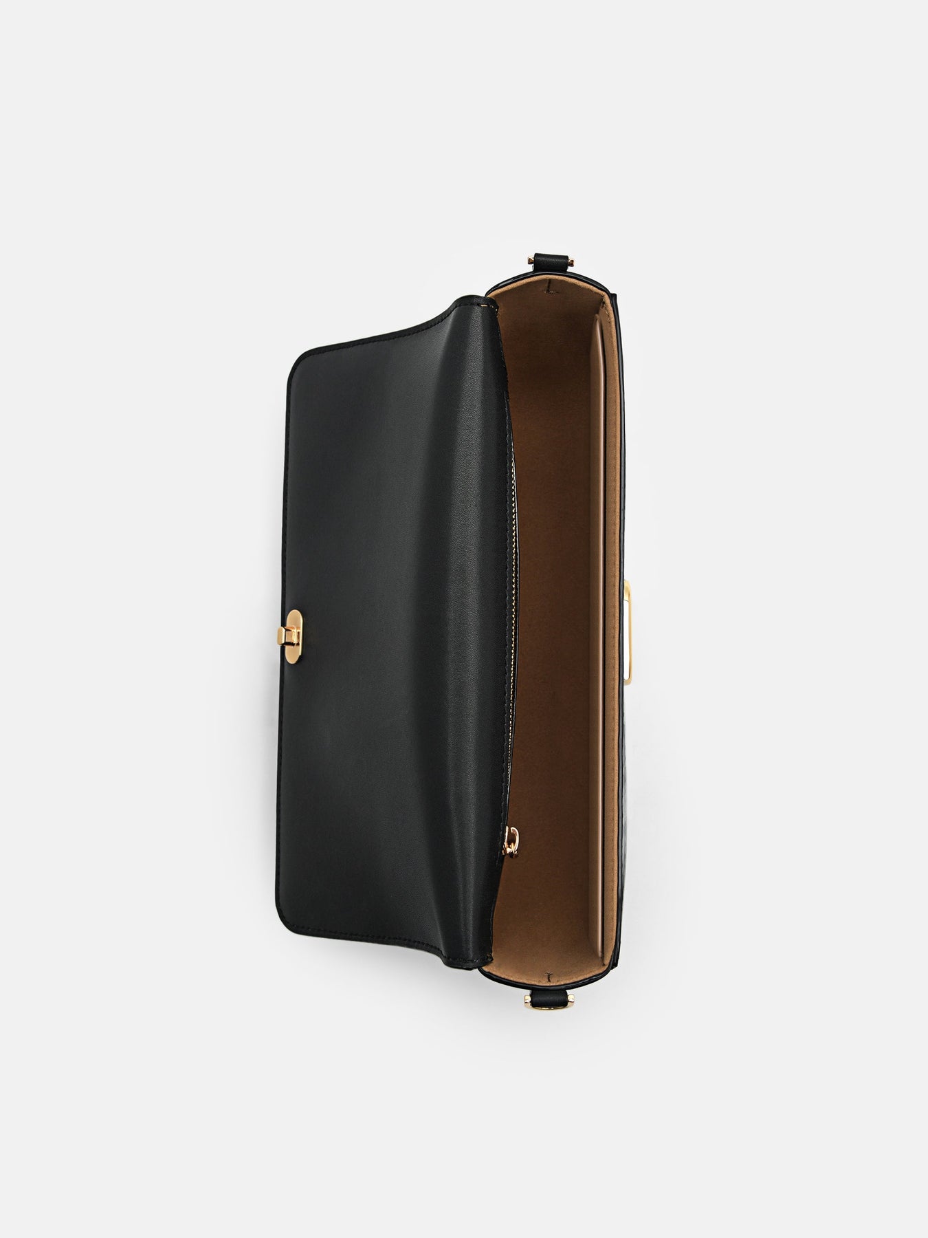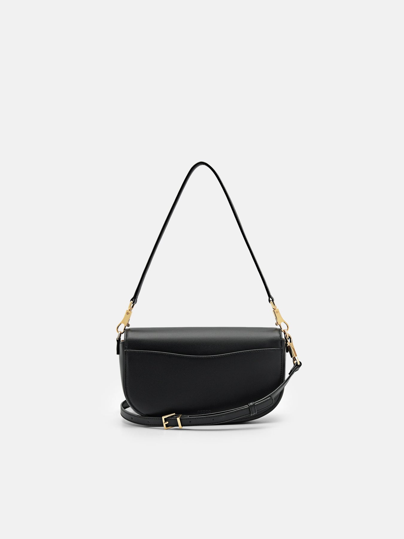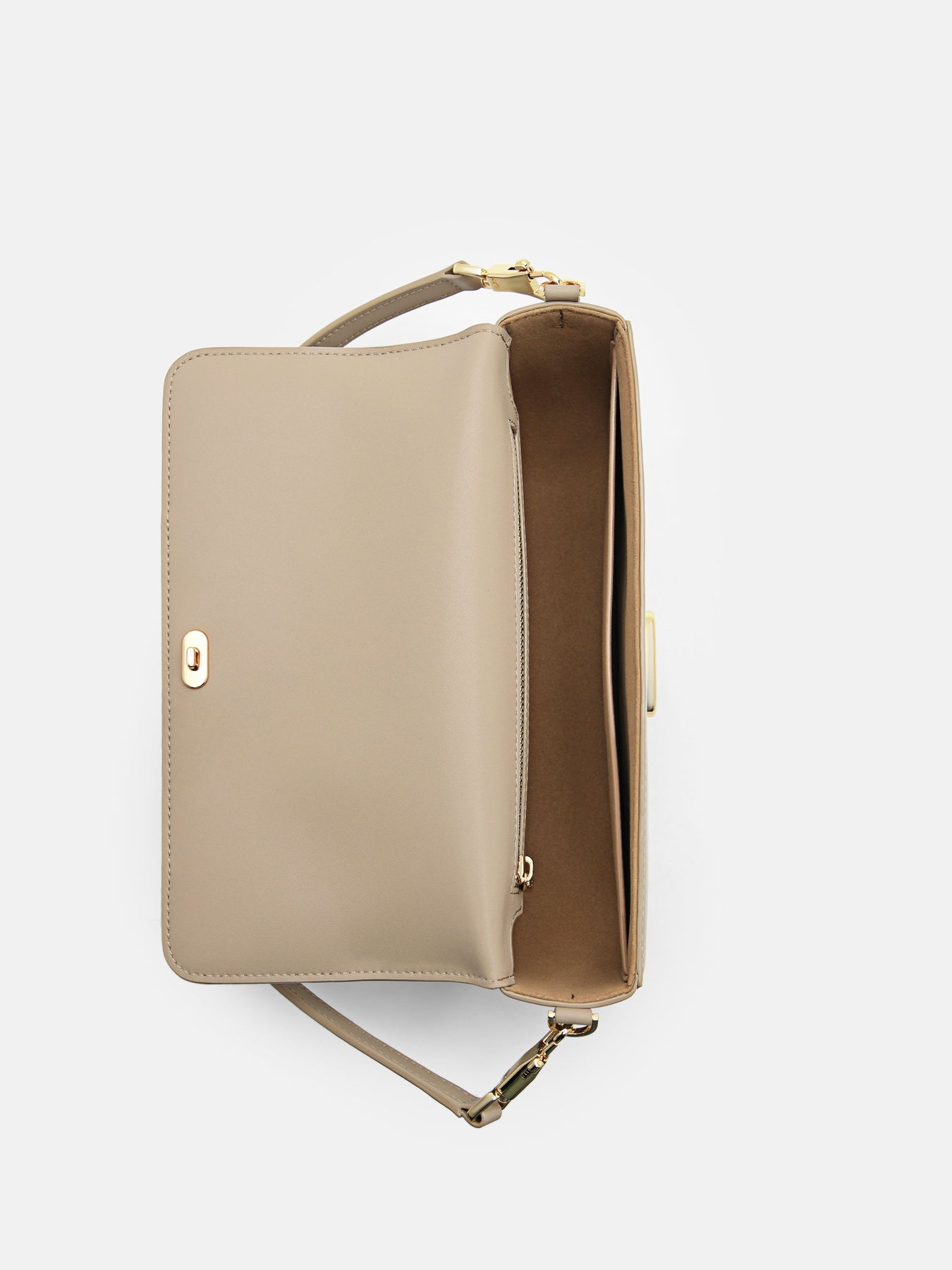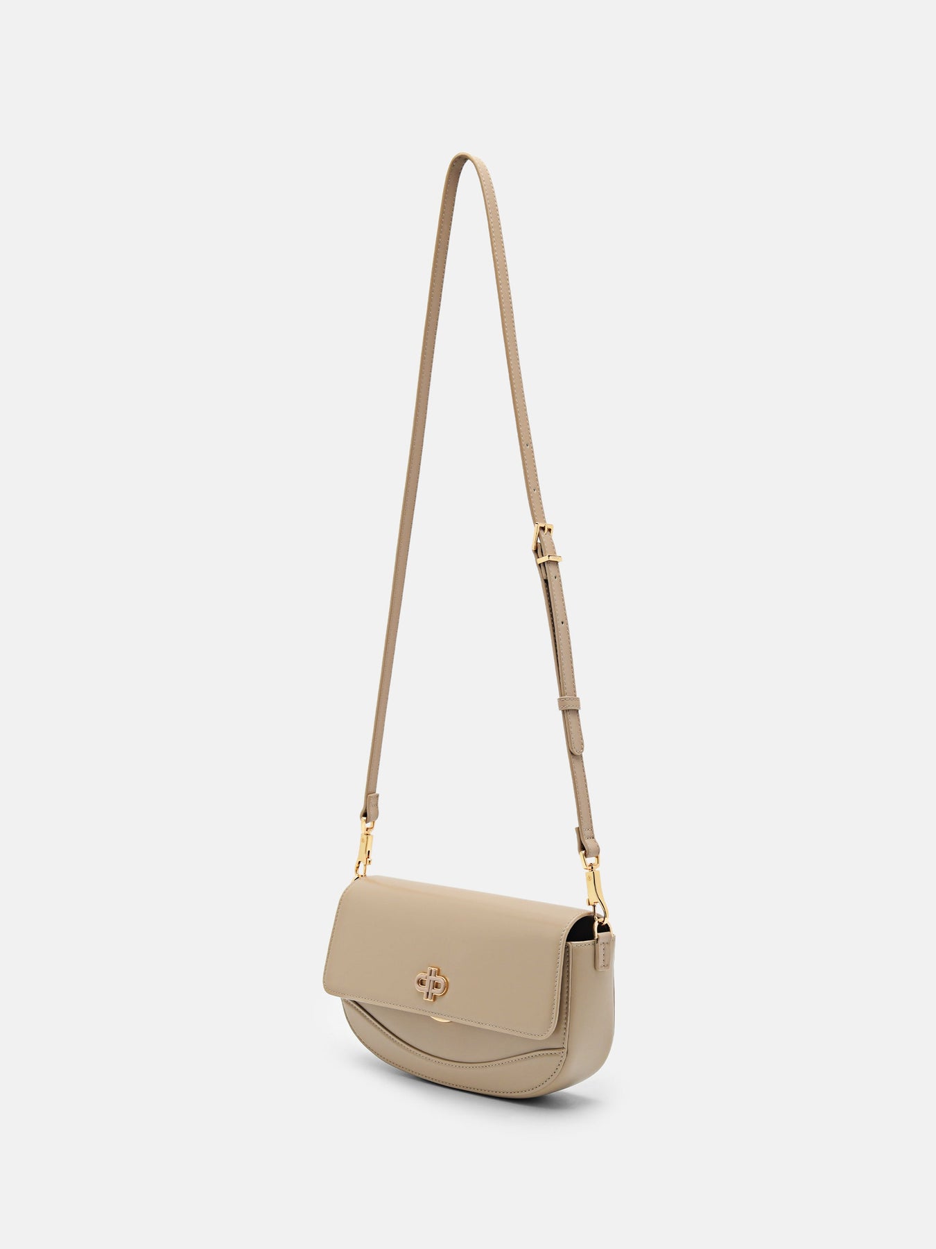 The Leather Shoulder Bag brings structure and softness into sharp balance. Its rounded silhouette is defined by a clean top flap and finished with tonal monogram detailing that whispers branding rather than shouts it. Crafted from calf leather and accented with gold-tone hardware, the bag balances classic codes with a contemporary lens.
