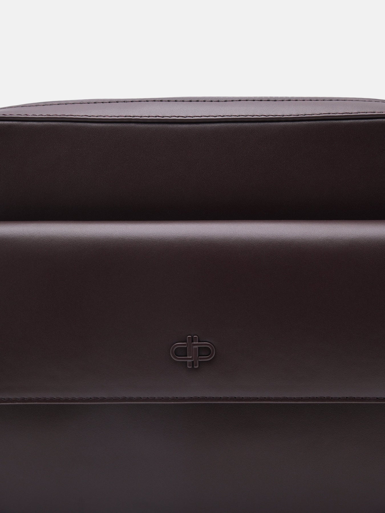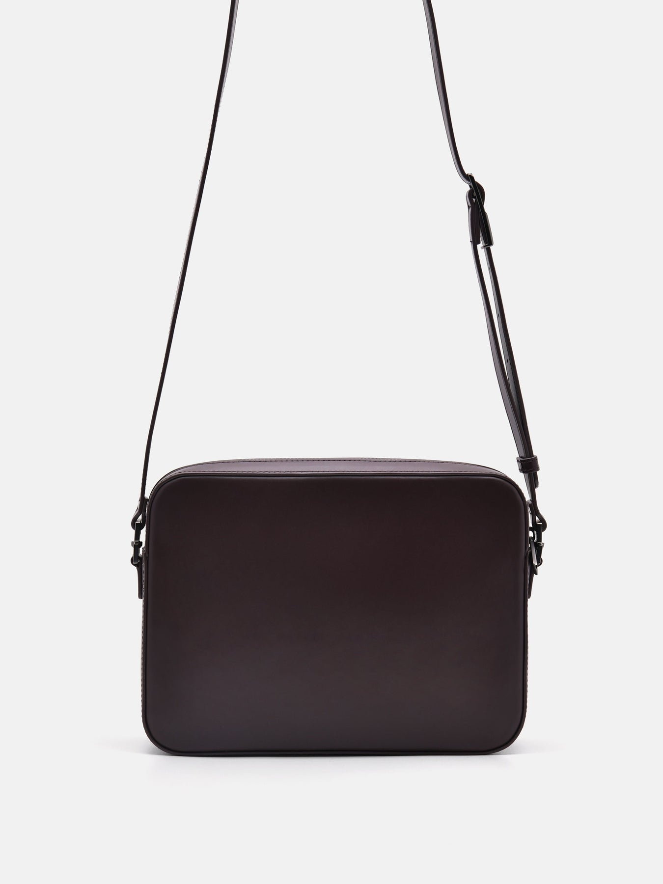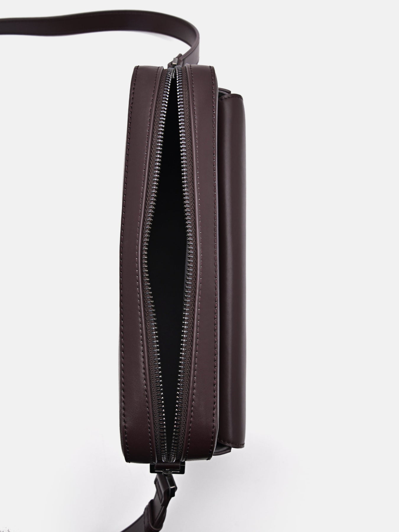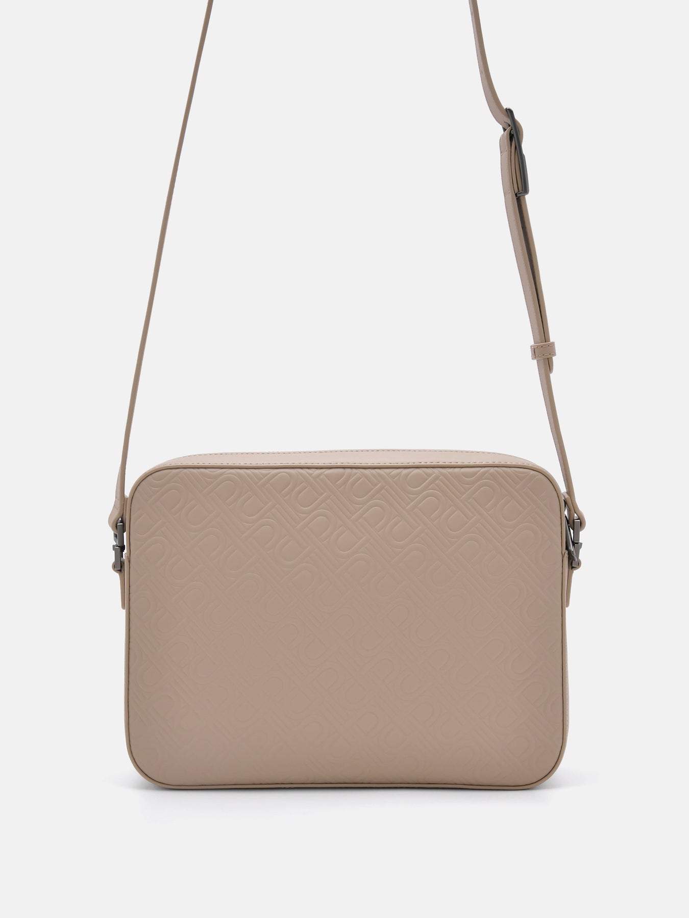 The Leather Crossbody Bag embodies modern restraint with a boxy silhouette that balances presence and subtlety. Crafted from smooth leather, its tone-on-tone hardware and embossed monogram speak quietly but confidently, allowing the form and finish to take centre stage.