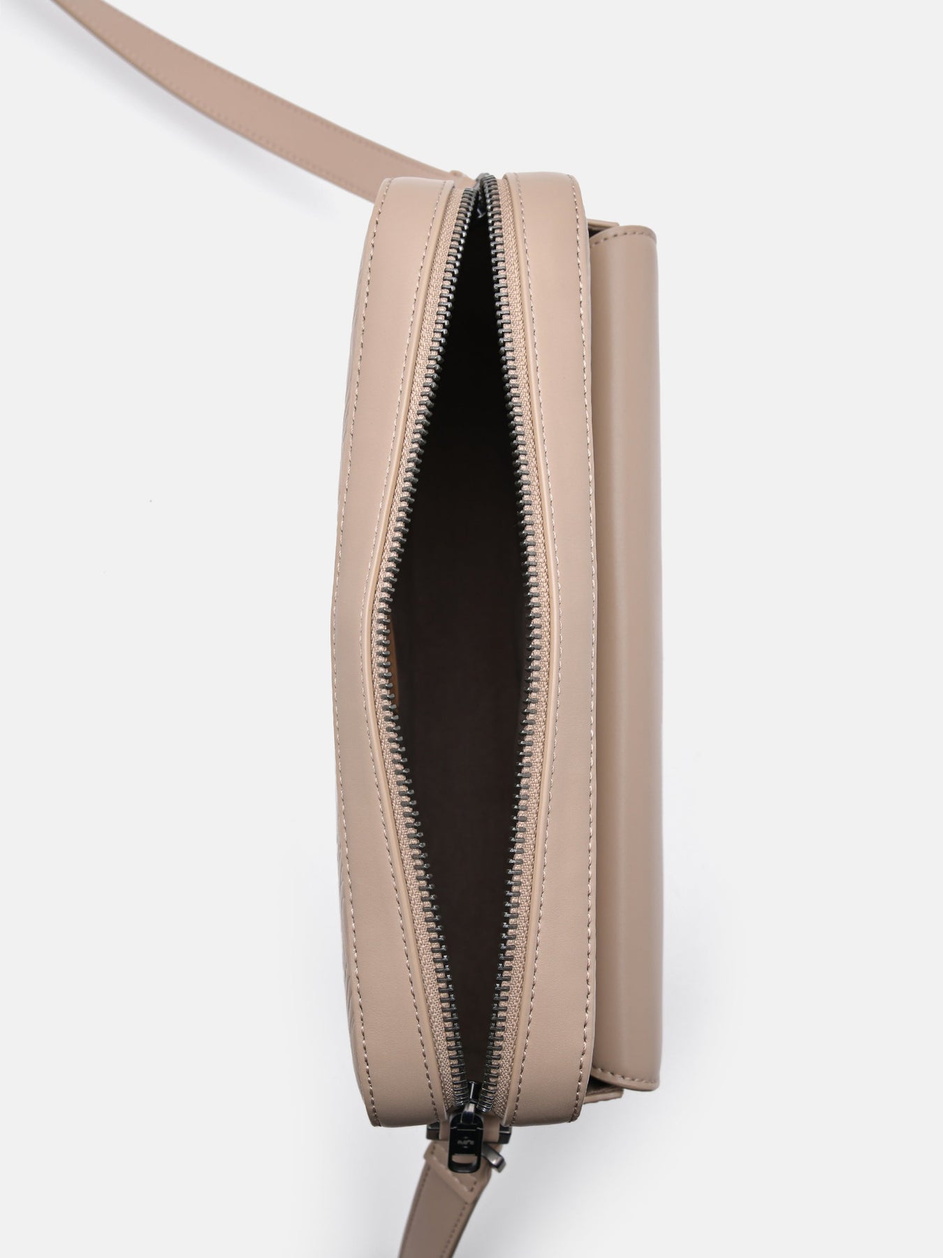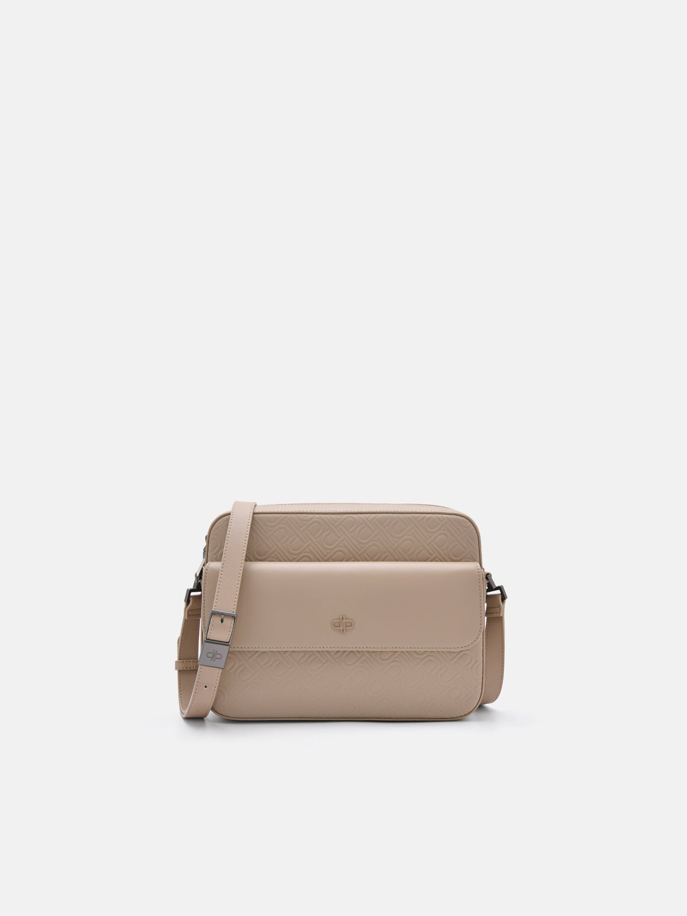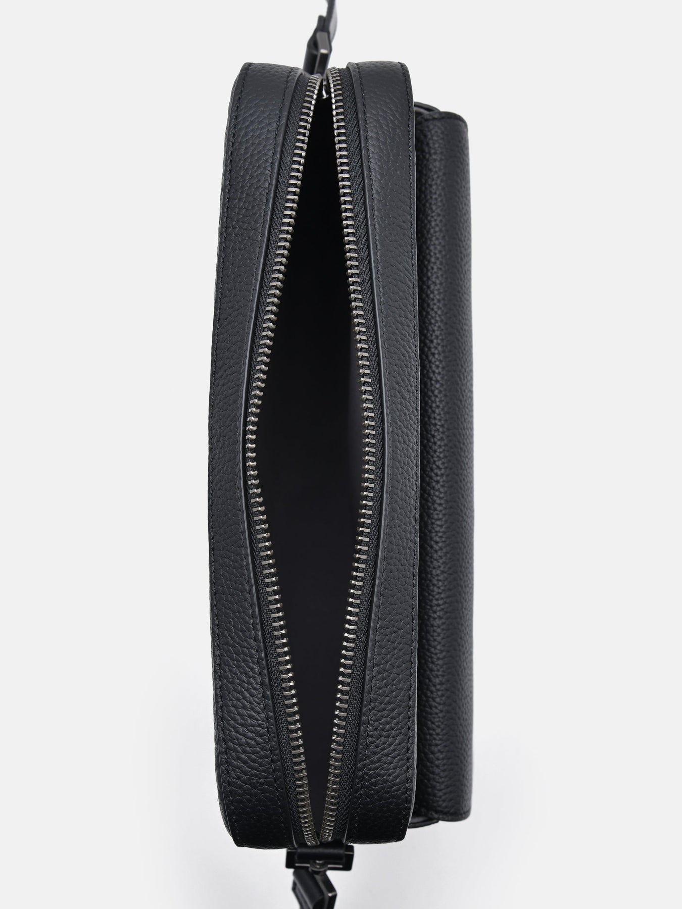 The Leather Crossbody Bag embodies modern restraint with a boxy silhouette that balances presence and subtlety. Crafted from smooth leather, its tone-on-tone hardware and embossed monogram speak quietly but confidently, allowing the form and finish to take centre stage.