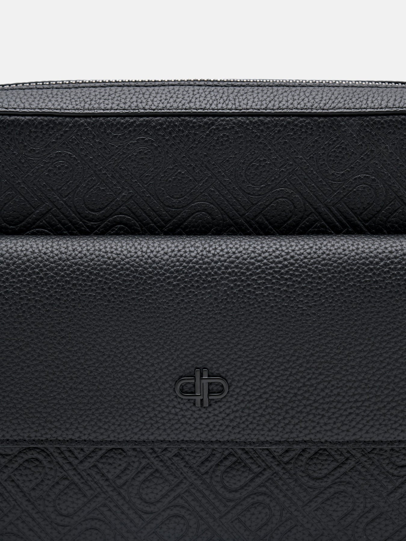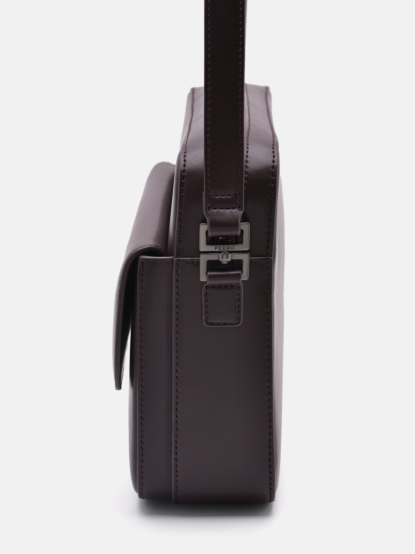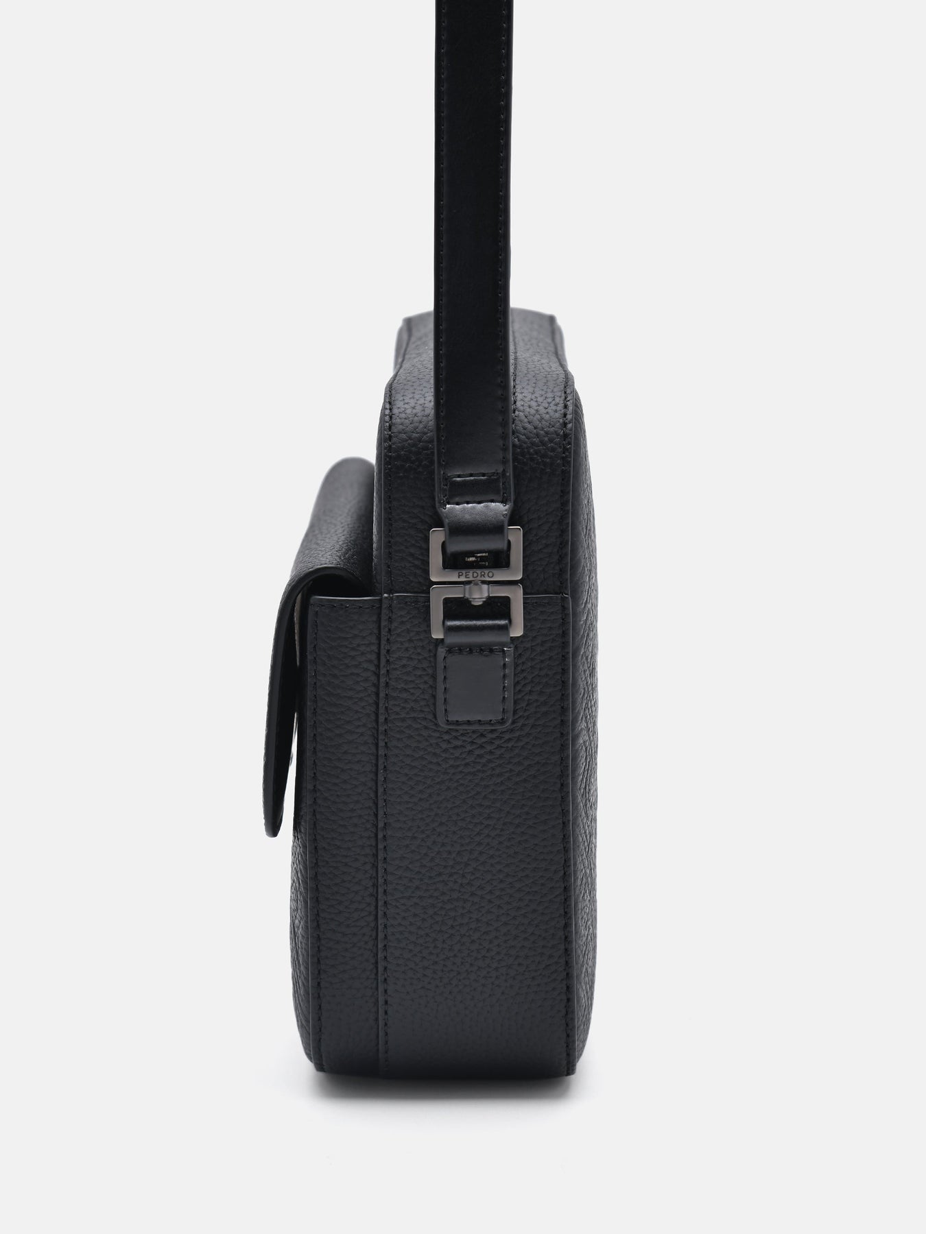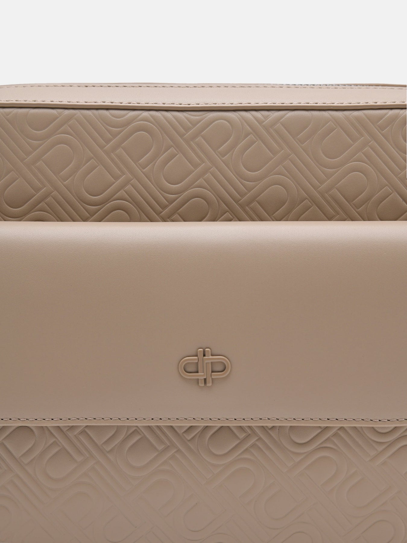 The Leather Crossbody Bag embodies modern restraint with a boxy silhouette that balances presence and subtlety. Crafted from smooth leather, its tone-on-tone hardware and embossed monogram speak quietly but confidently, allowing the form and finish to take centre stage.