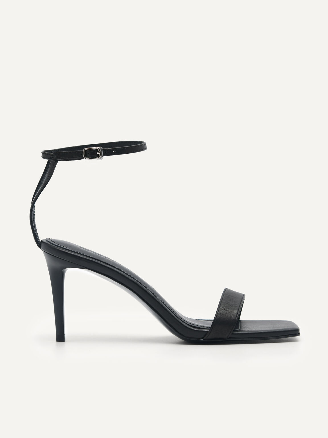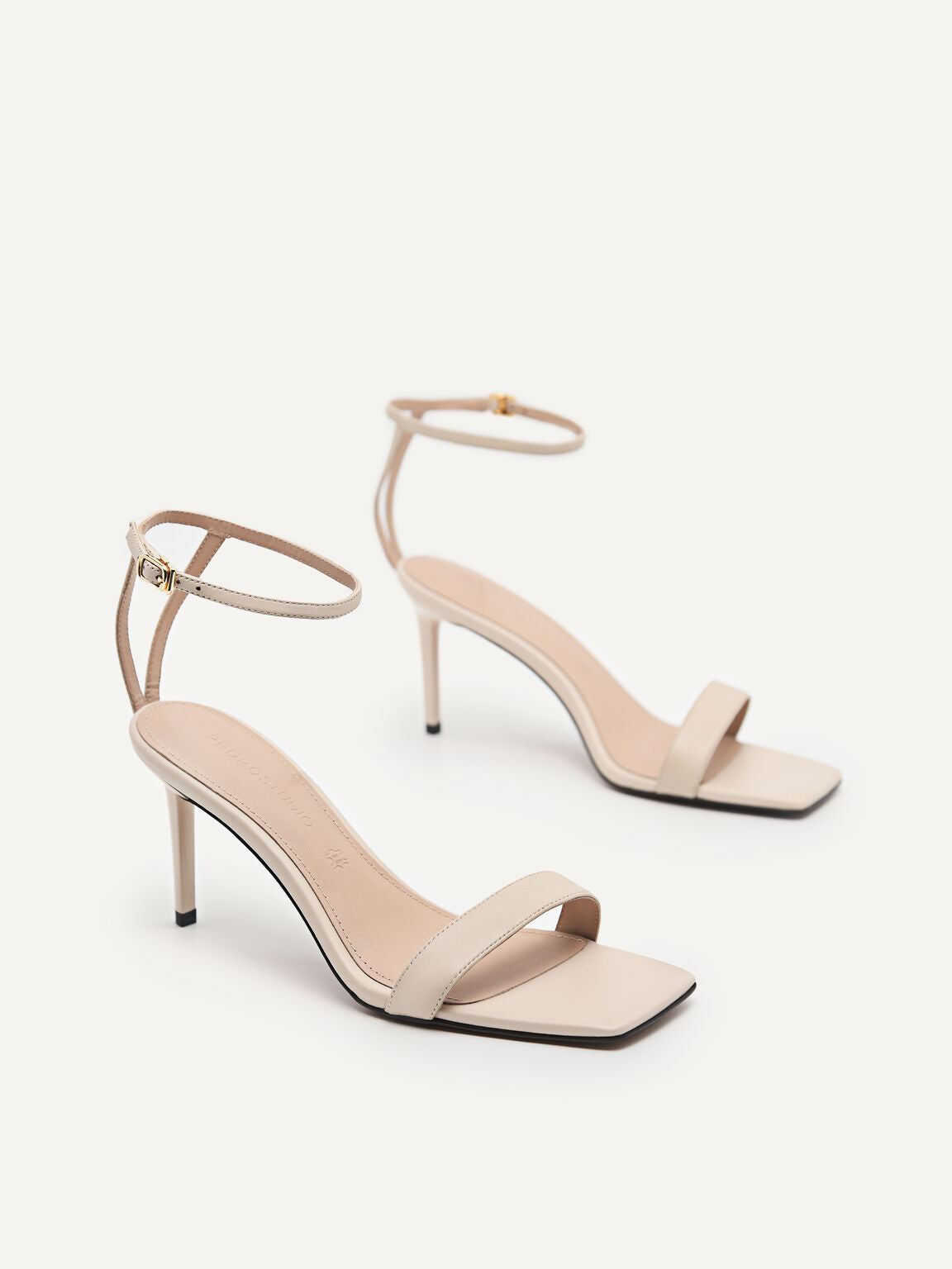 Meet your newest date-night and occasion wear companions: this pair of elegant Leather High Heeled Sandals, luxuriously crafted with smooth kid leather, swathed in a timeless nude shade. You?ll fall in love with its open square-toe silhouette, sleek adjustable ankle strap, and not forgetting its stunning 80mm stiletto heels. Getting ready and looking your best for a classy date night out will never be easier thanks to this gorgeous pair.